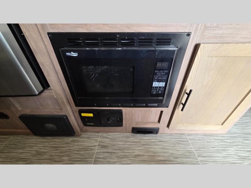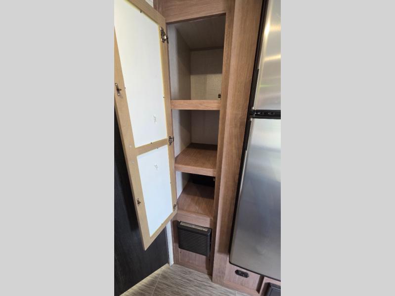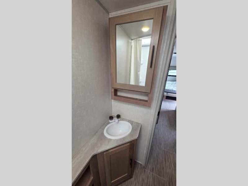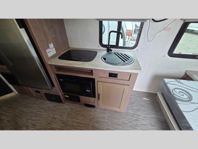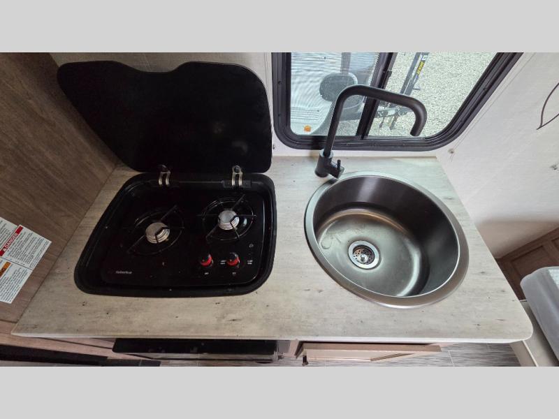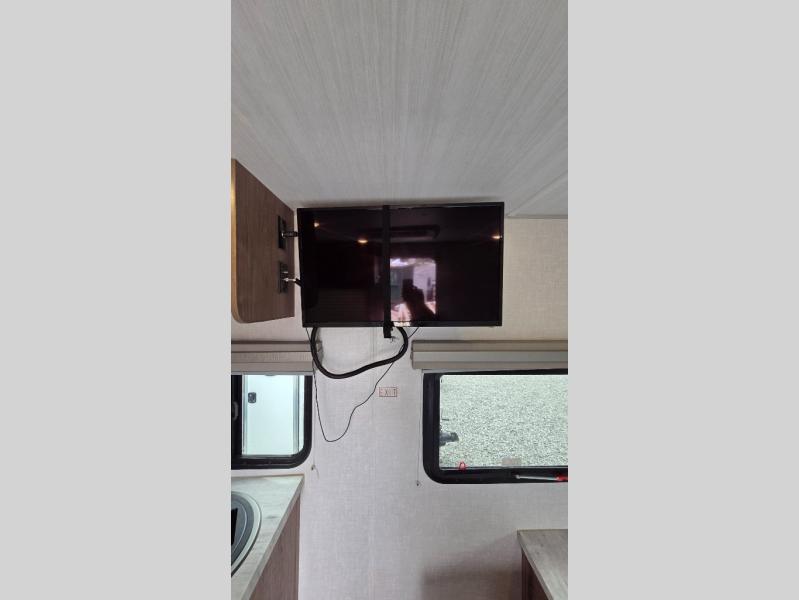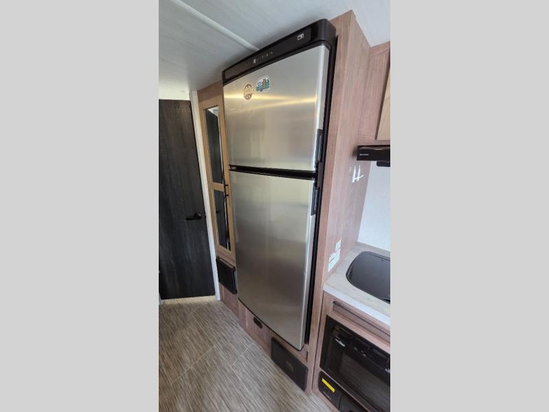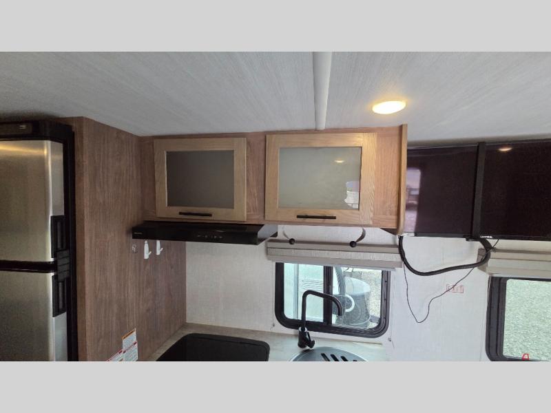 With this No Boundaries travel trailer, you can go to places you've never been before! This rugged trailer offers you lots of storage for your favorite equipment with the J-cradle kayak holder, two vortex bars, and RVT track all from Rhino Rack. The 16' power awning will protect you while you're outside having fun, and once you make your way inside, you can sit down at the 30" x 75" booth dinette for some dinner. The 44" x 74" bunks will give you extra sleeping space without taking up too much room, and the Murphy bed also utilizes space well by folding away during the day to reveal a sofa.