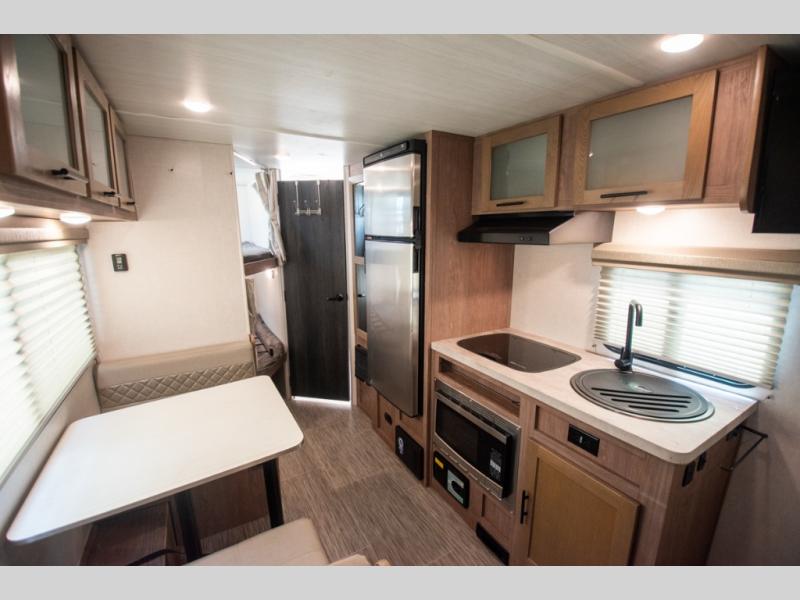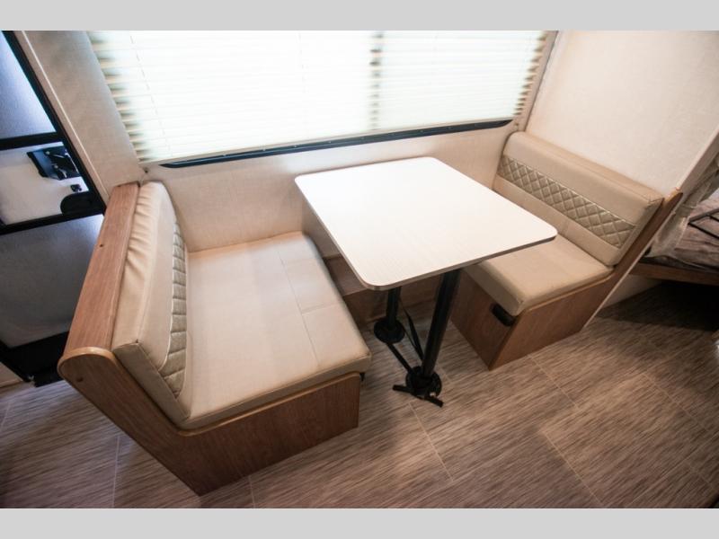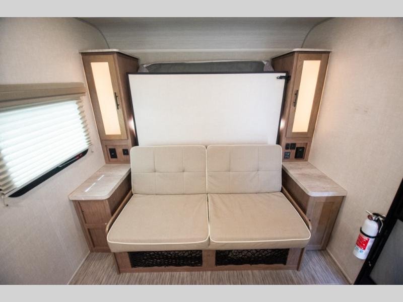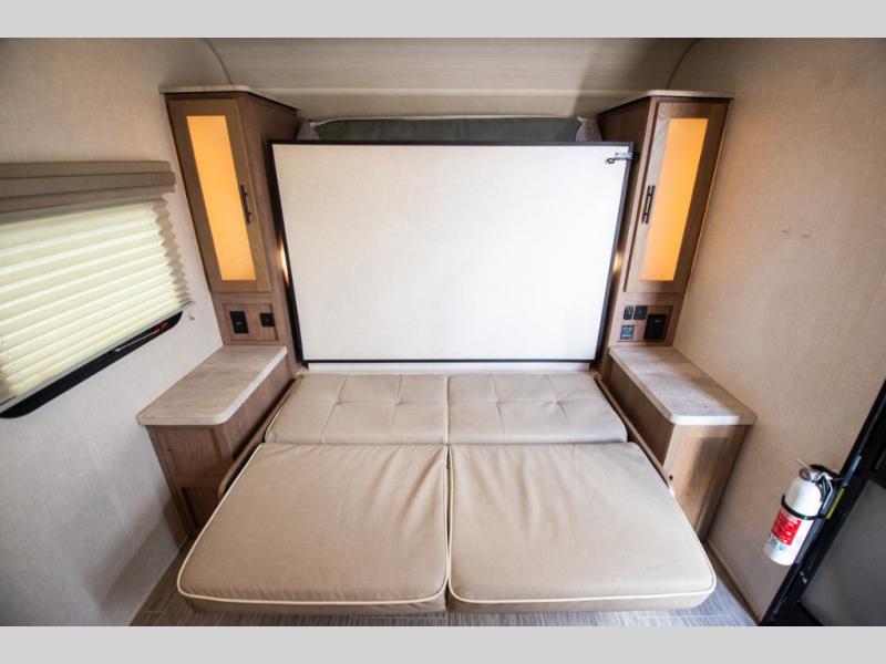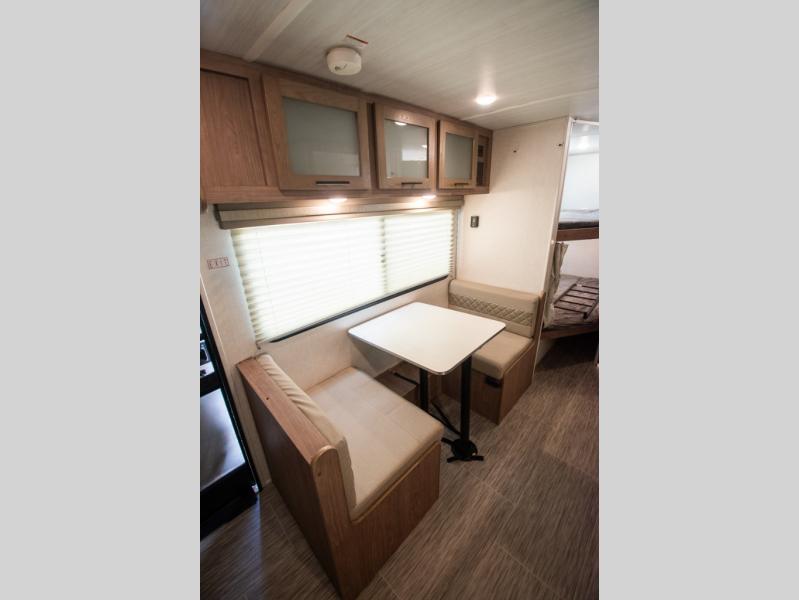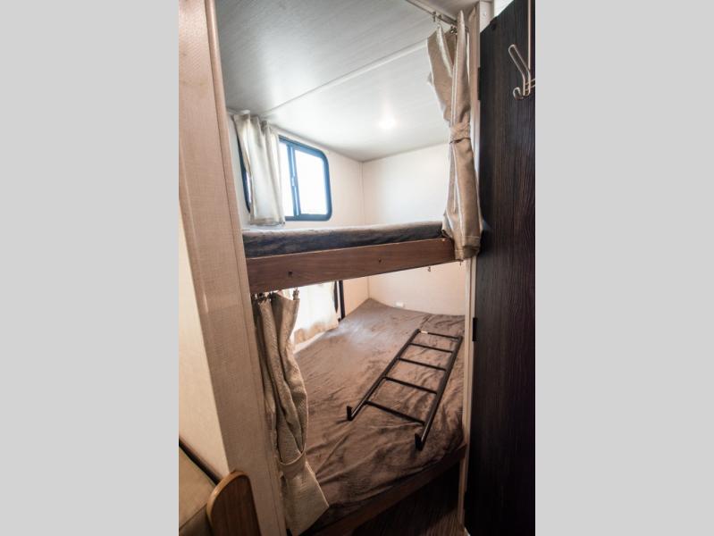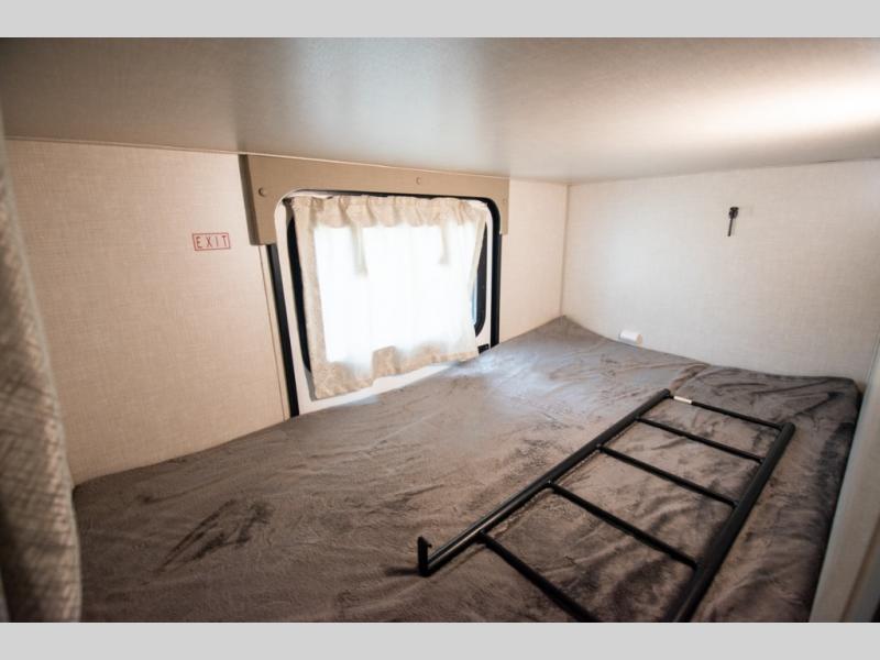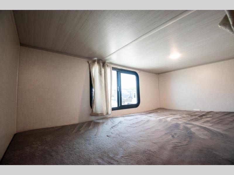 With this No Boundaries travel trailer, you can go to places you've never been before! This rugged trailer offers you lots of storage for your favorite equipment with the J-cradle kayak holder, two vortex bars, and RVT track all from Rhino Rack. The 16' power awning will protect you while you're outside having fun, and once you make your way inside, you can sit down at the 30" x 75" booth dinette for some dinner. The 44" x 74" bunks will give you extra sleeping space without taking up too much room, and the Murphy bed also utilizes space well by folding away during the day to reveal a sofa.
