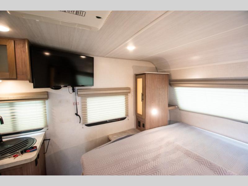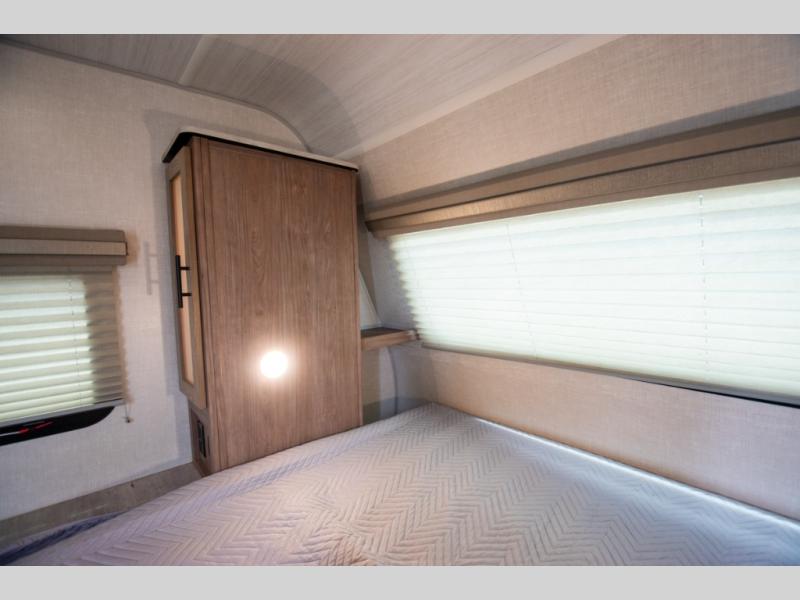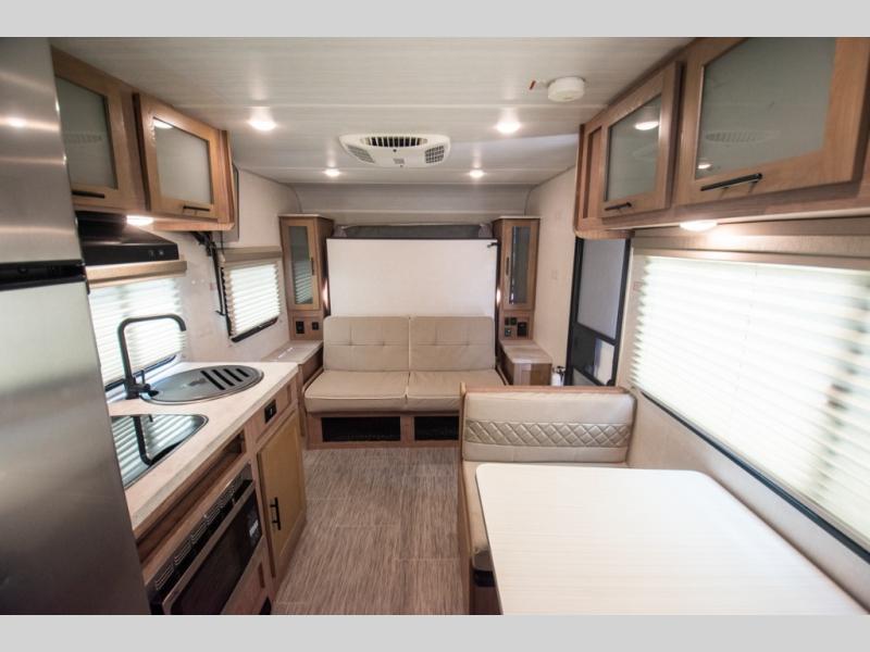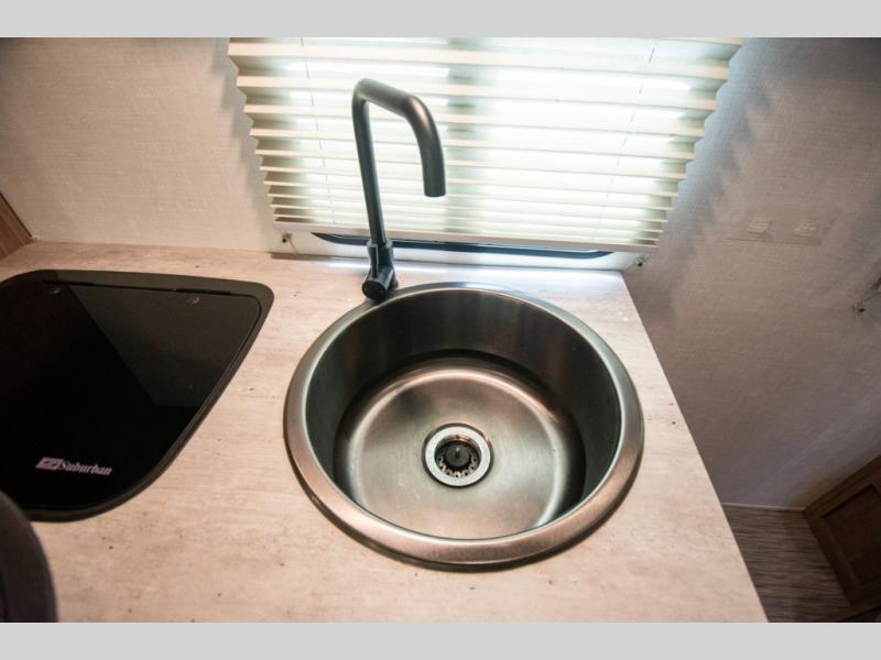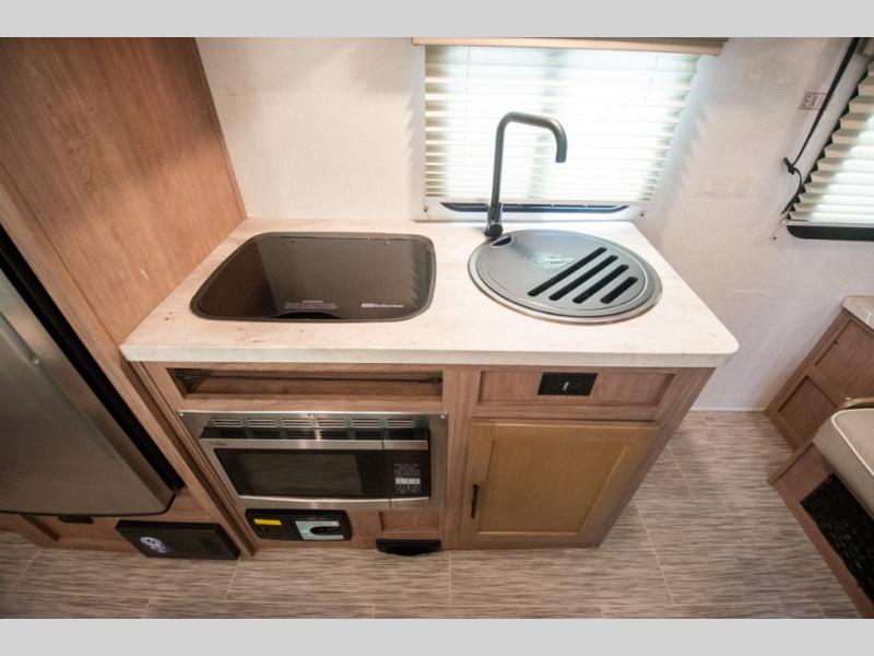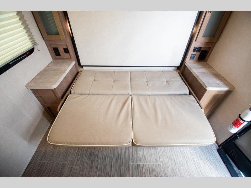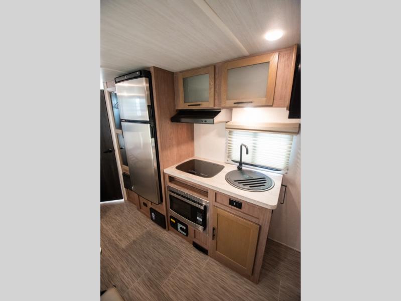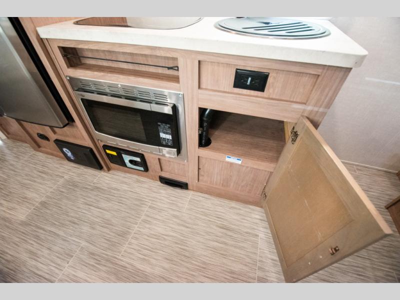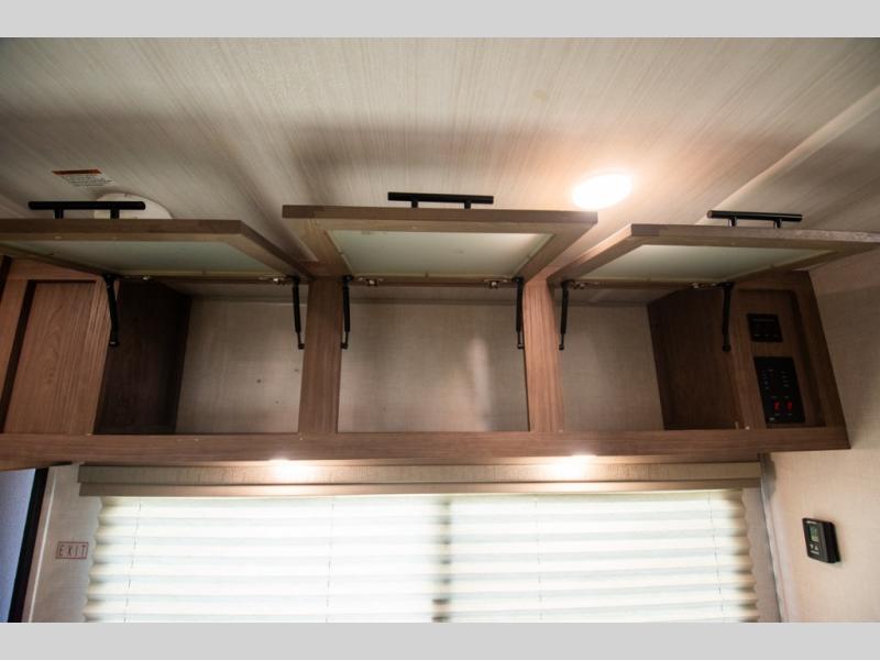 With this No Boundaries travel trailer, you can go to places you've never been before! This rugged trailer offers you lots of storage for your favorite equipment with the J-cradle kayak holder, two vortex bars, and RVT track all from Rhino Rack. The 16' power awning will protect you while you're outside having fun, and once you make your way inside, you can sit down at the 30" x 75" booth dinette for some dinner. The 44" x 74" bunks will give you extra sleeping space without taking up too much room, and the Murphy bed also utilizes space well by folding away during the day to reveal a sofa.
