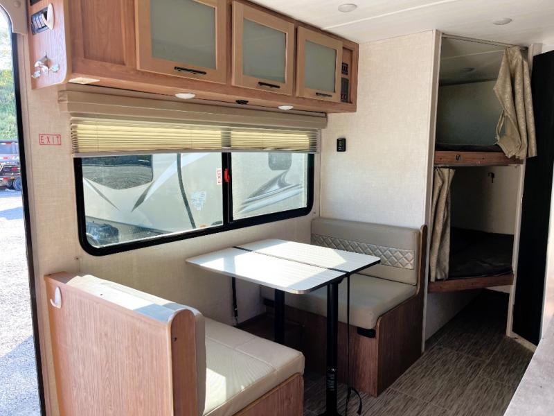 With this No Boundaries travel trailer, you can go to places you've never been before! This rugged trailer offers you lots of storage for your favorite equipment with the J-cradle kayak holder, two vortex bars, and RVT track all from Rhino Rack. The 16' power awning will protect you while you're outside having fun, and once you make your way inside, you can sit down at the 30" x 75" booth dinette for some dinner. The 44" x 74" bunks will give you extra sleeping space without taking up too much room, and the Murphy bed also utilizes space well by folding away during the day to reveal a sofa.