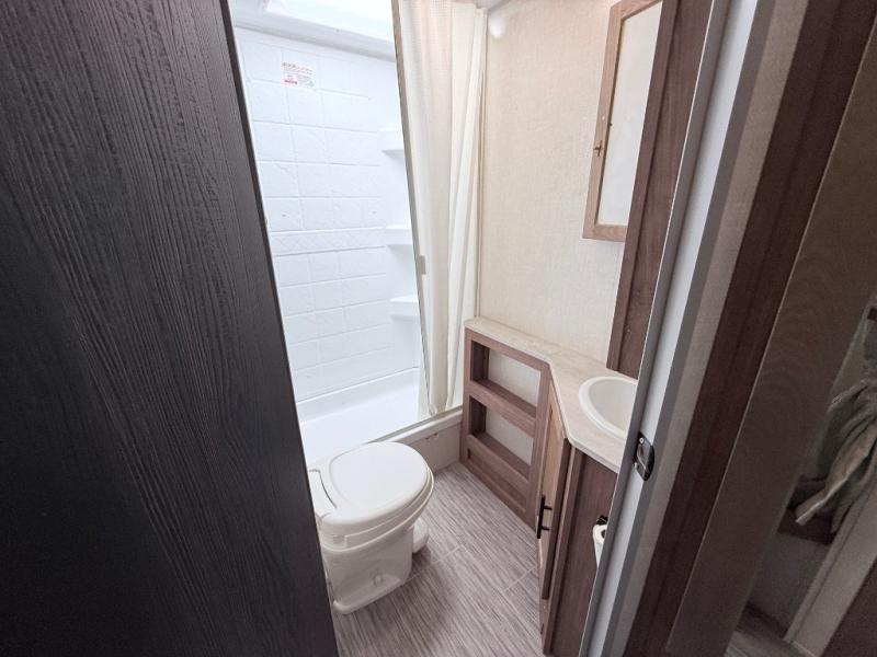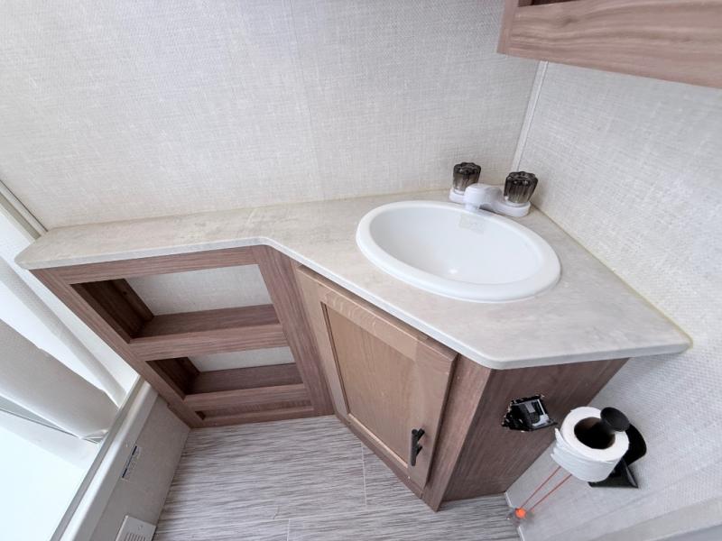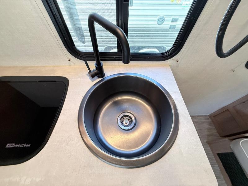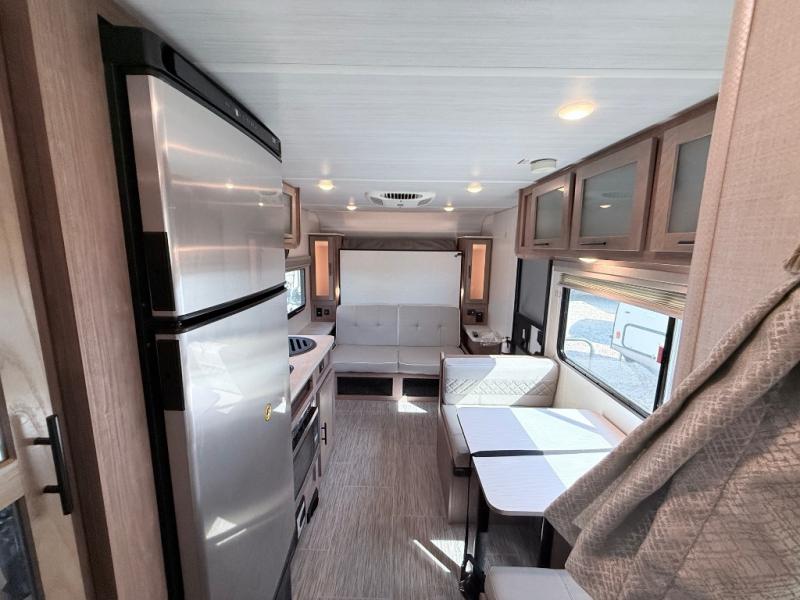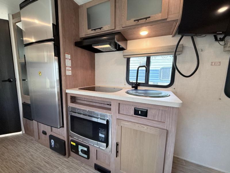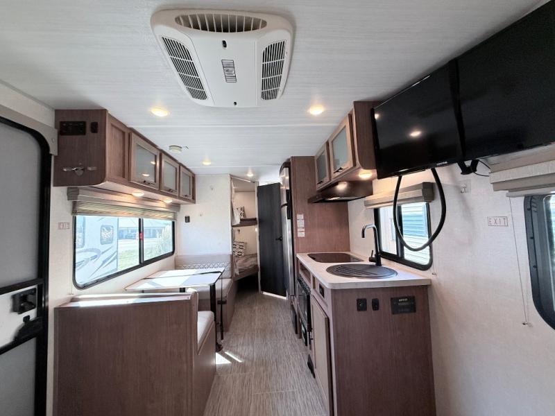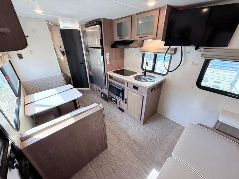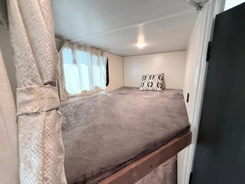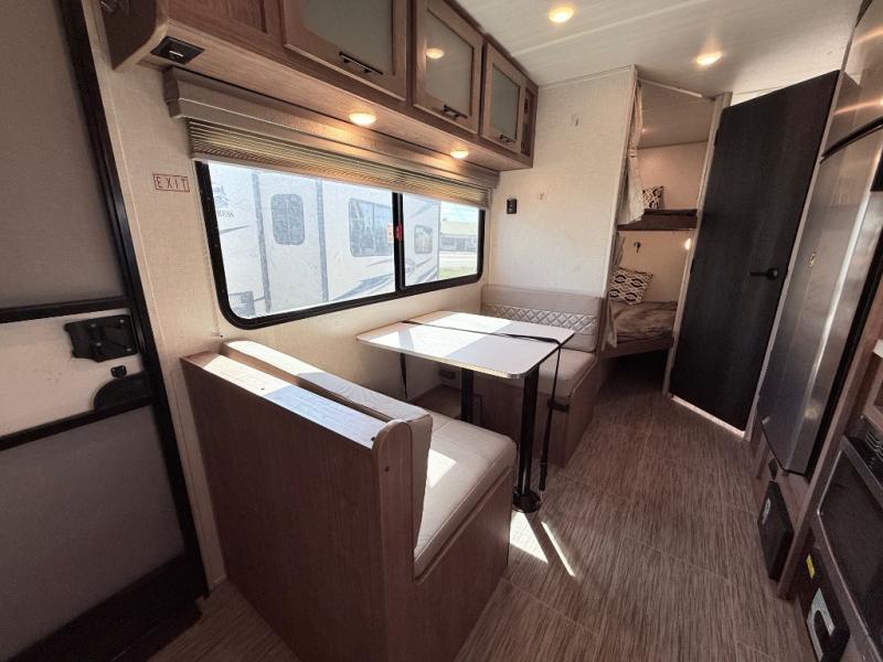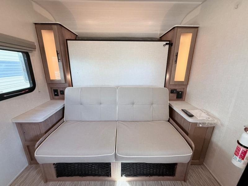 With this No Boundaries travel trailer, you can go to places you've never been before! This rugged trailer offers you lots of storage for your favorite equipment with the J-cradle kayak holder, two vortex bars, and RVT track all from Rhino Rack. The 16' power awning will protect you while you're outside having fun, and once you make your way inside, you can sit down at the 30" x 75" booth dinette for some dinner. The 44" x 74" bunks will give you extra sleeping space without taking up too much room, and the Murphy bed also utilizes space well by folding away during the day to reveal a sofa.