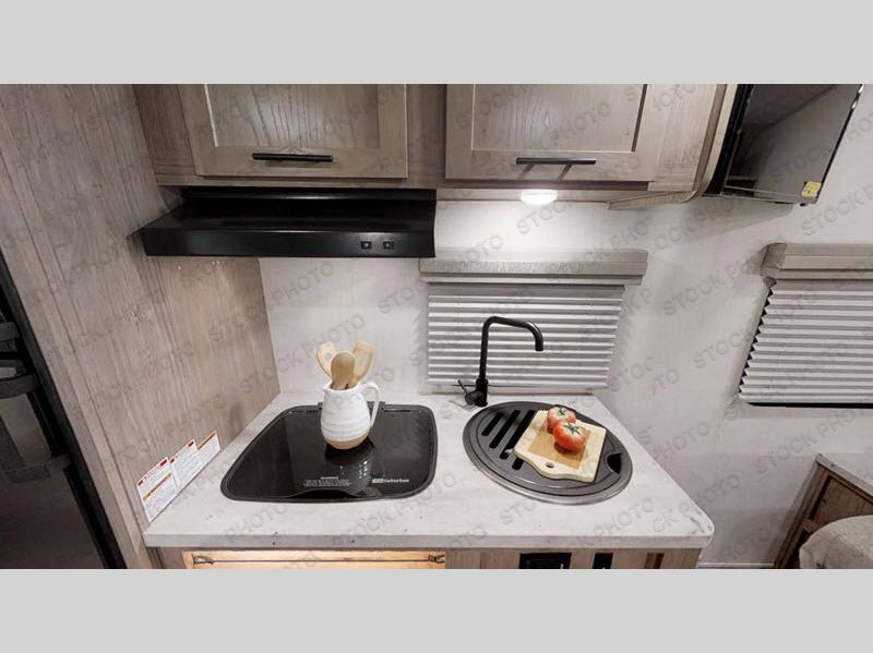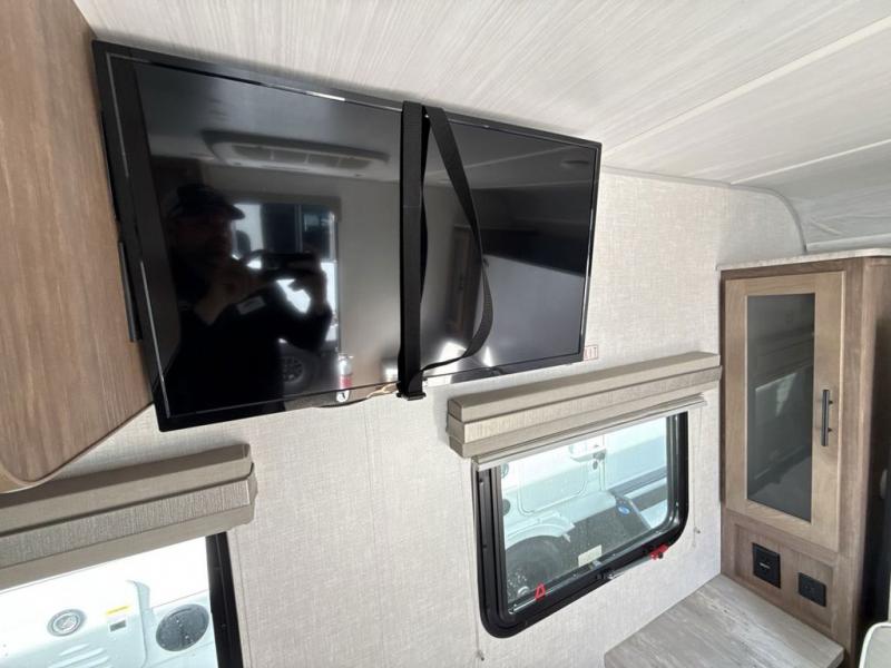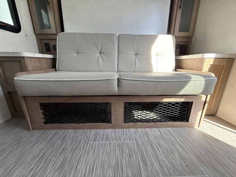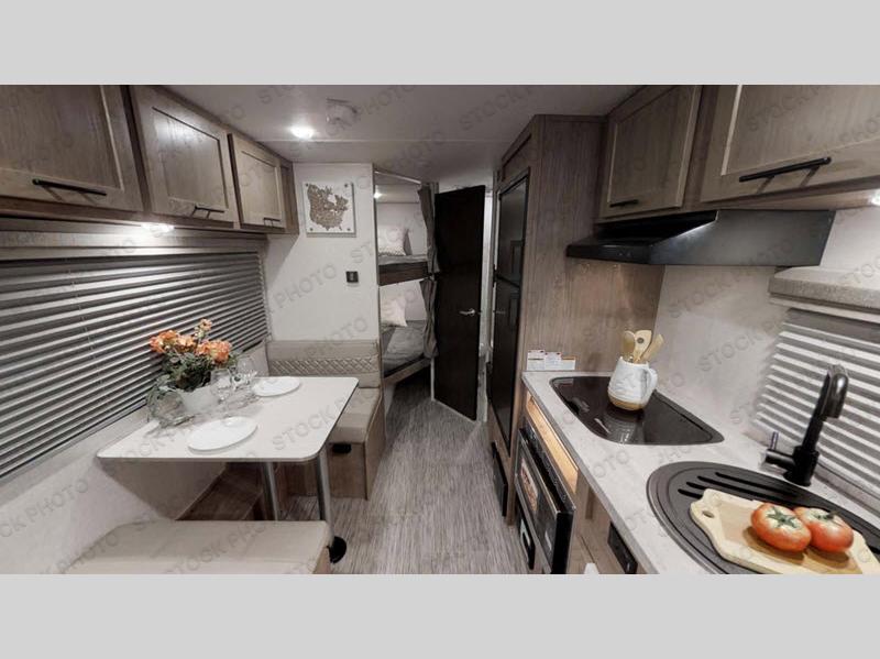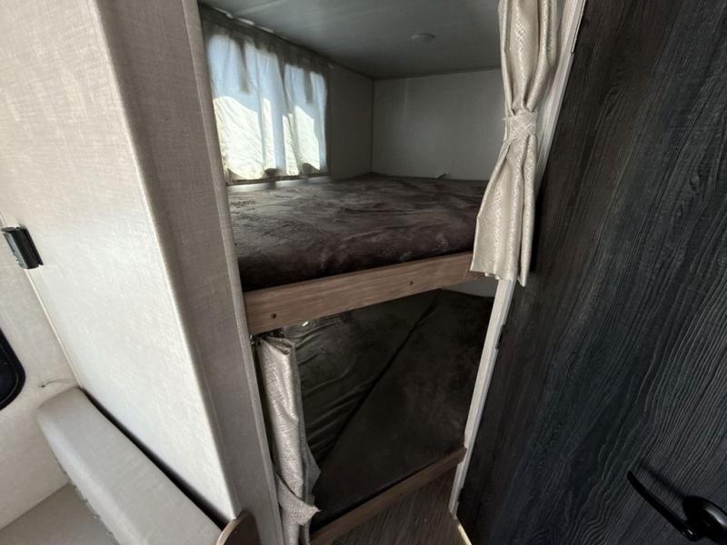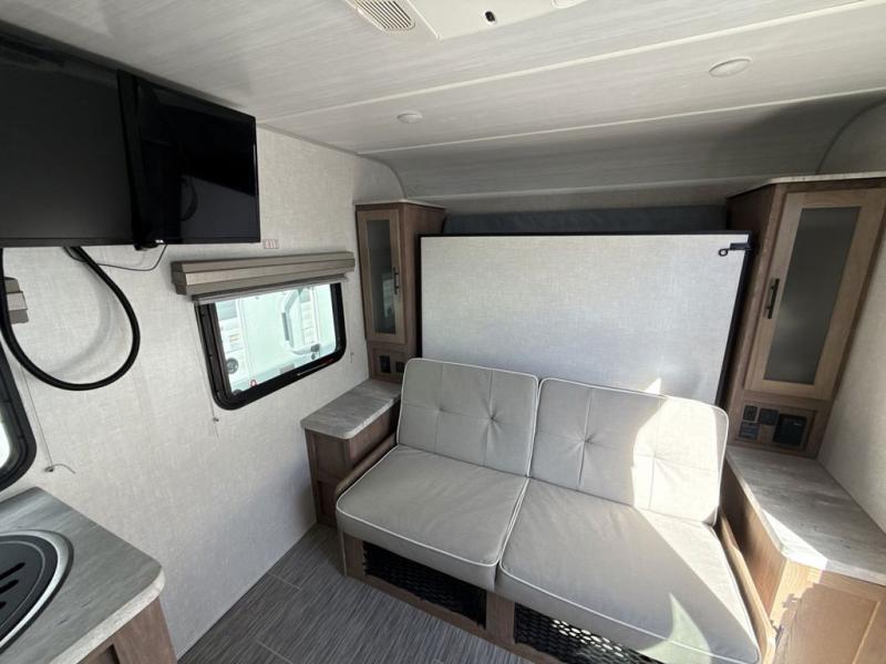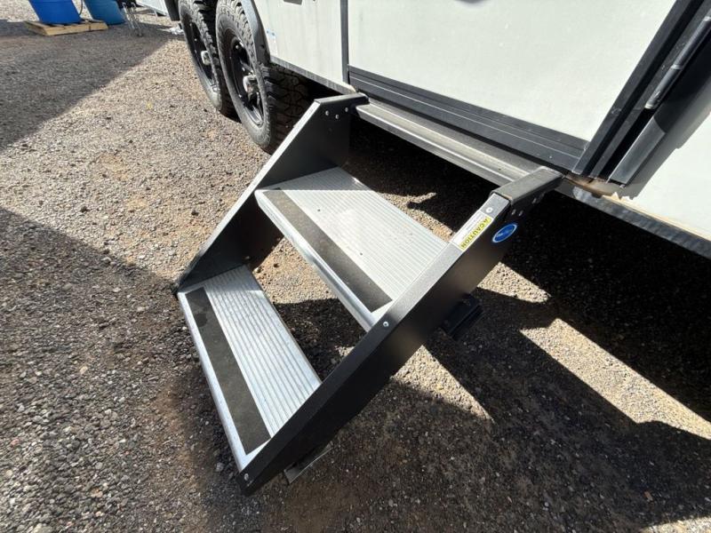 With this No Boundaries travel trailer, you can go to places you've never been before! This rugged trailer offers you lots of storage for your favorite equipment with the J-cradle kayak holder, two vortex bars, and RVT track all from Rhino Rack. The 16' power awning will protect you while you're outside having fun, and once you make your way inside, you can sit down at the 30" x 75" booth dinette for some dinner. The 44" x 74" bunks will give you extra sleeping space without taking up too much room, and the Murphy bed also utilizes space well by folding away during the day to reveal a sofa.