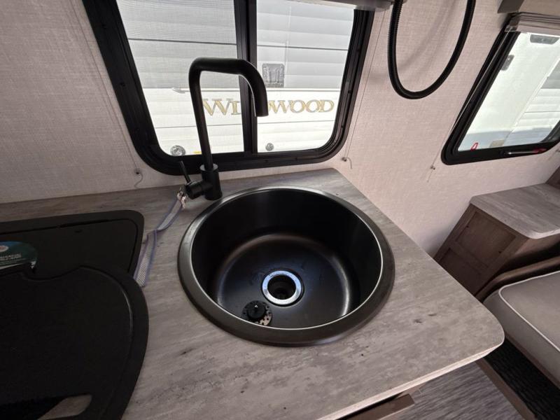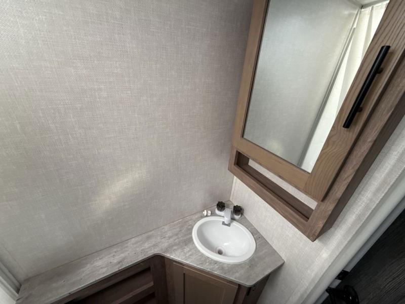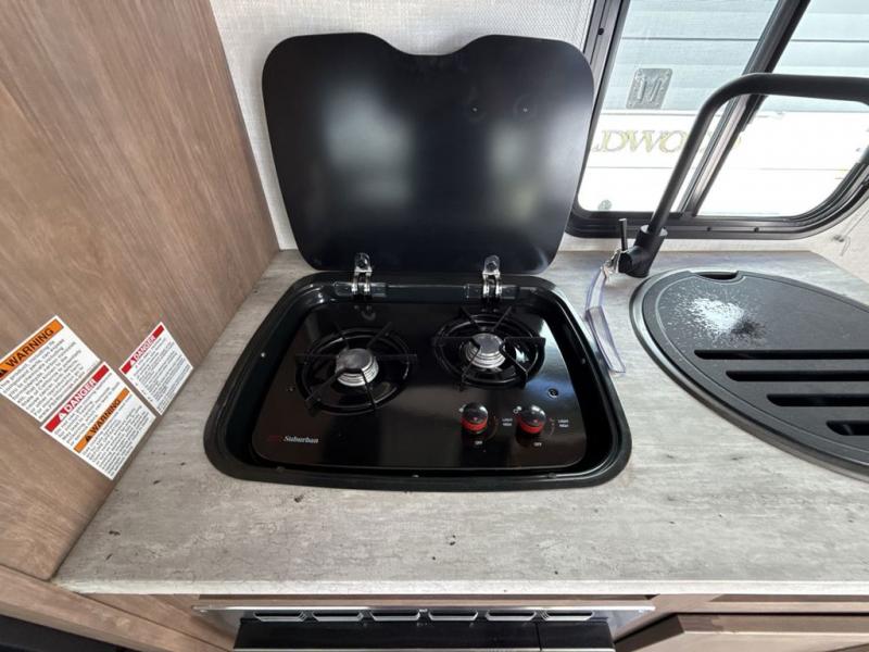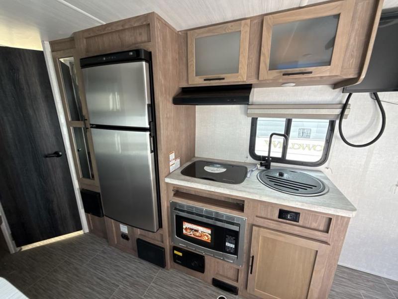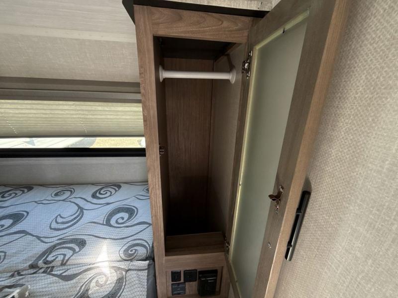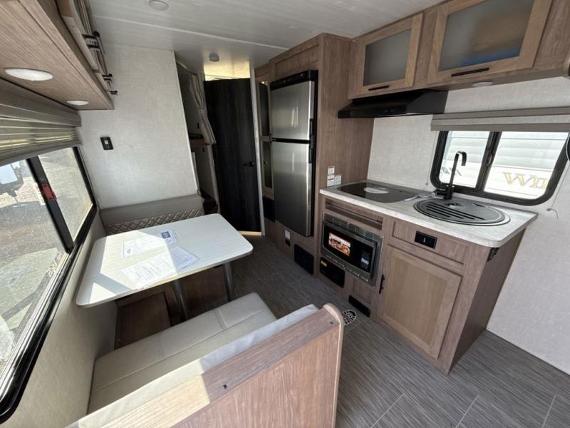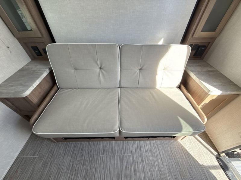 With this No Boundaries travel trailer, you can go to places you've never been before! This rugged trailer offers you lots of storage for your favorite equipment with the J-cradle kayak holder, two vortex bars, and RVT track all from Rhino Rack. The 16' power awning will protect you while you're outside having fun, and once you make your way inside, you can sit down at the 30" x 75" booth dinette for some dinner. The 44" x 74" bunks will give you extra sleeping space without taking up too much room, and the Murphy bed also utilizes space well by folding away during the day to reveal a sofa.