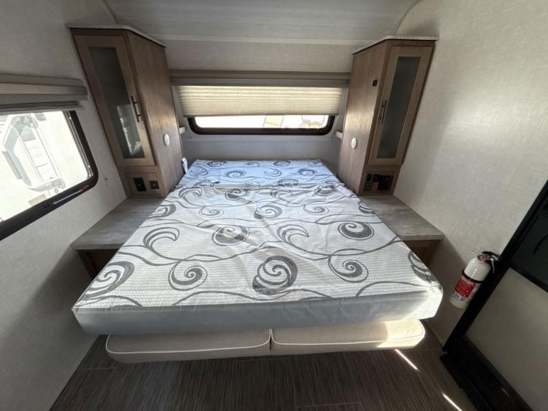 If you want to break free from the travel constraints of standard trailers, then you must choose the Forest River No Boundaries travel trailer or toy hauler because they are rugged and ready for adventure! These trailers offer you a Rhino Rack RVT track to bring along your kayaks or fishing equipment, high-performance vinyl furniture to relax on, a USB charging station to power your electronics, and a Cold Weather Package to keep you warm during the cold season. You'll also have satin matte-finish six-lug wheels wrapped in all-terrain tires for an exceptional ride.
