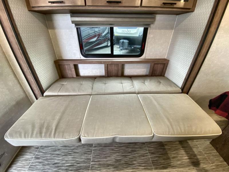 If you want to break free from the travel constraints of standard trailers, then you must choose the Forest River No Boundaries travel trailer or toy hauler because they are rugged and ready for adventure! These trailers offer you a Rhino Rack RVT track to bring along your kayaks or fishing equipment, high-performance vinyl furniture to relax on, a USB charging station to power your electronics, and a Cold Weather Package to keep you warm during the cold season. You'll also have satin matte-finish six-lug wheels wrapped in all-terrain tires for an exceptional ride.