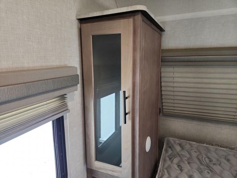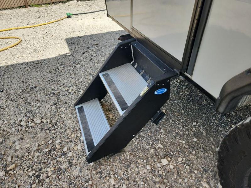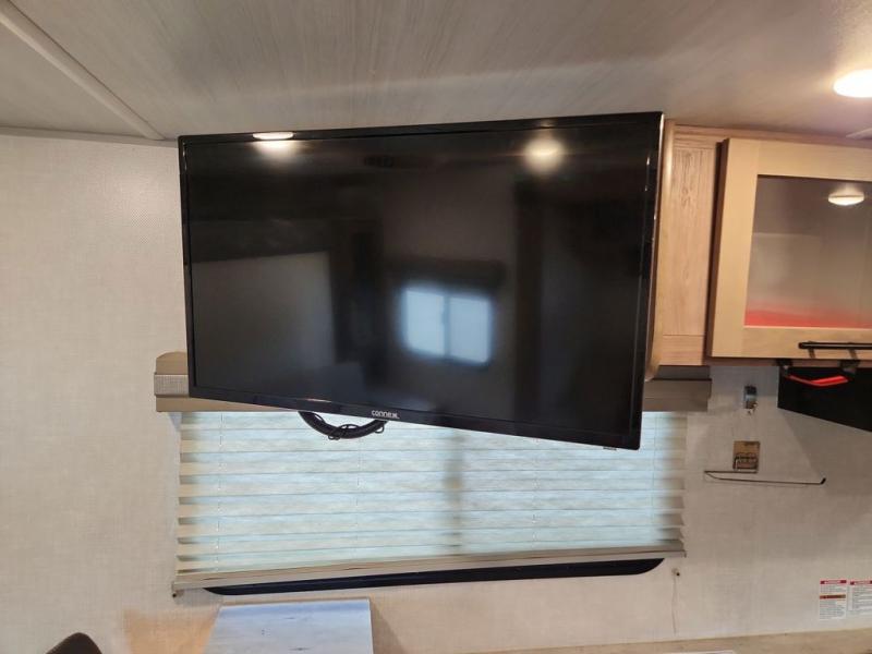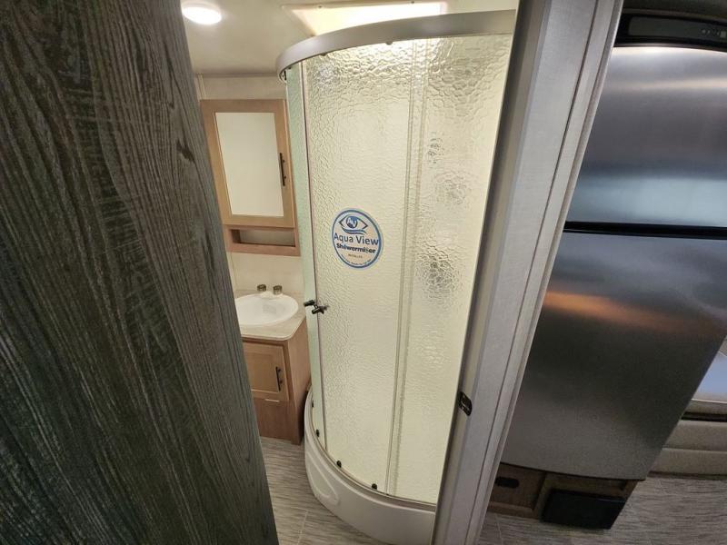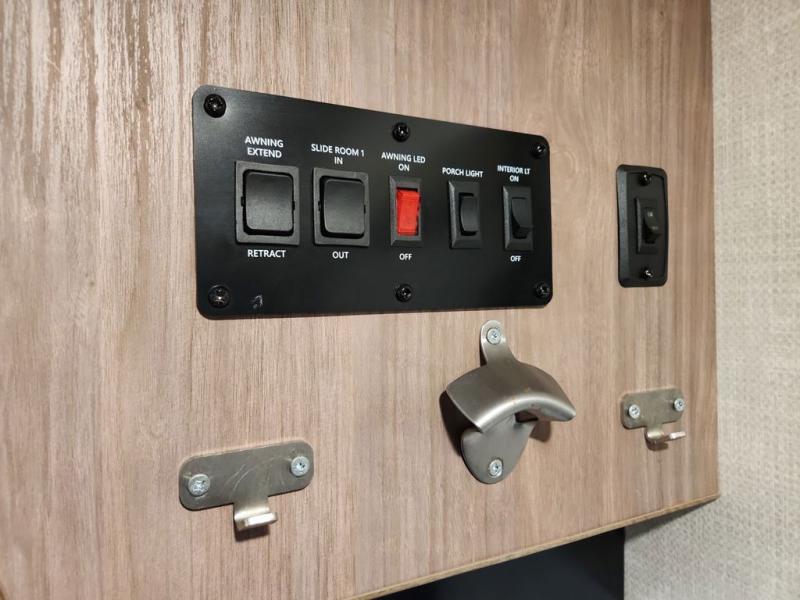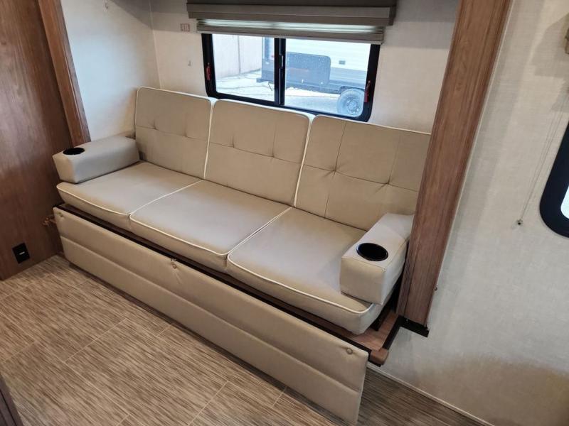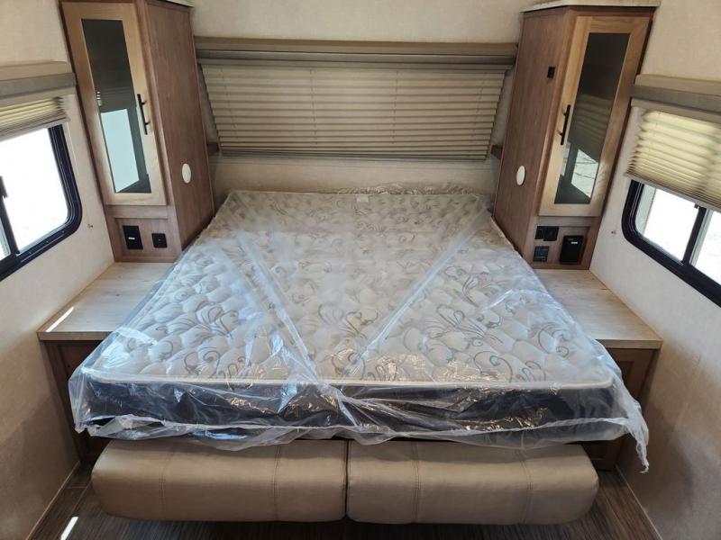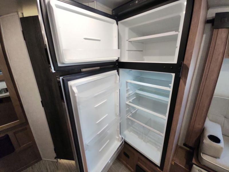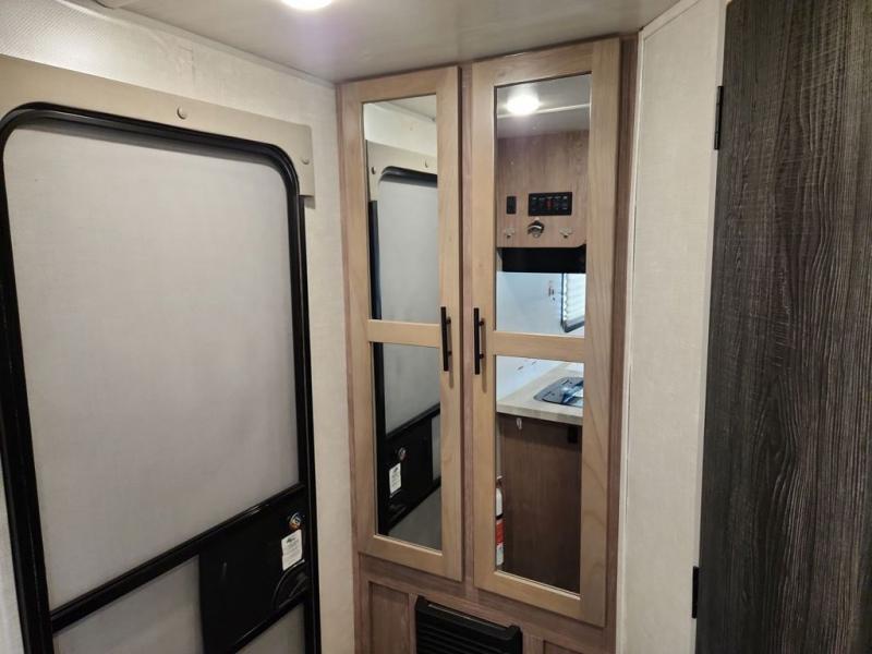 Make your camping dreams come true with this No Boundaries travel trailer! As you enter this unit, you'll notice an entryway closet that you can use to store your coats and scarves, and the full bathroom is also right in front of the entry door for easy access when you need it. The kitchen has great amenities, like a two-burner glass recessed cooktop, a refrigerator, and a sink, and there is a breakfast bar with two stools where you can sit down with a fresh plate of eggs each morning. When you fold away the Murphy bed in the morning, you'll have two sofas to rest on throughout the day, and you can use the JBL FLIP portable Bluetooth speaker to listen to some music while you enjoy the day.