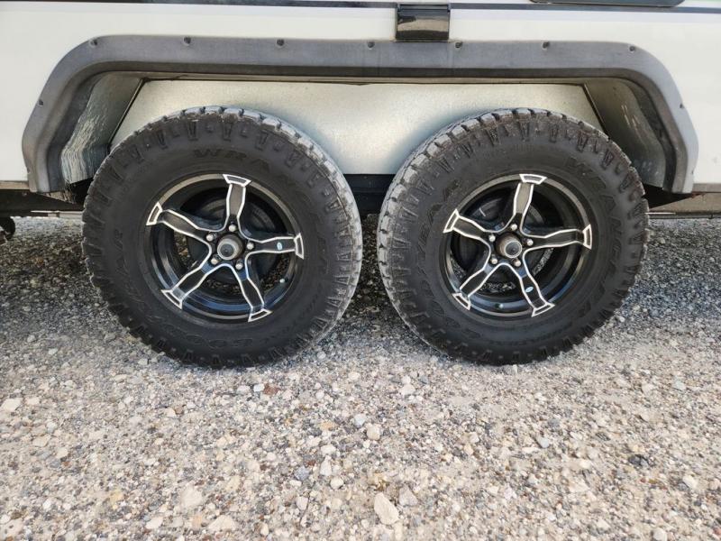 If you want to break free from the travel constraints of standard trailers, then you must choose the Forest River No Boundaries travel trailer or toy hauler because they are rugged and ready for adventure! These trailers offer you a Rhino Rack RVT track to bring along your kayaks or fishing equipment, high-performance vinyl furniture to relax on, a USB charging station to power your electronics, and a Cold Weather Package to keep you warm during the cold season. You'll also have satin matte-finish six-lug wheels wrapped in all-terrain tires for an exceptional ride.