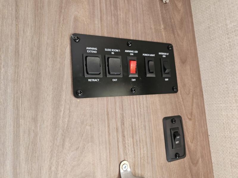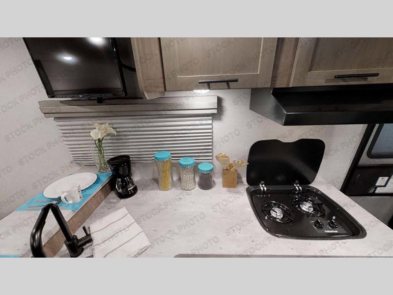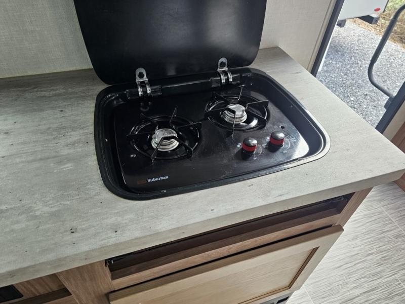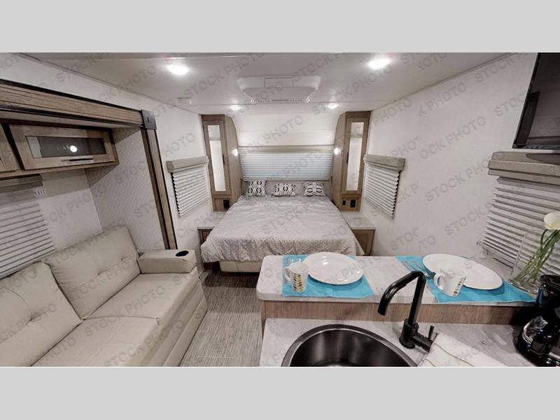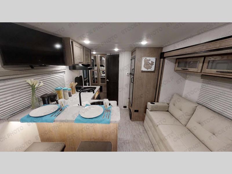 Make your camping dreams come true with this No Boundaries travel trailer! As you enter this unit, you'll notice an entryway closet that you can use to store your coats and scarves, and the full bathroom is also right in front of the entry door for easy access when you need it. The kitchen has great amenities, like a two-burner glass recessed cooktop, a refrigerator, and a sink, and there is a breakfast bar with two stools where you can sit down with a fresh plate of eggs each morning. When you fold away the Murphy bed in the morning, you'll have two sofas to rest on throughout the day, and you can use the JBL FLIP portable Bluetooth speaker to listen to some music while you enjoy the day.