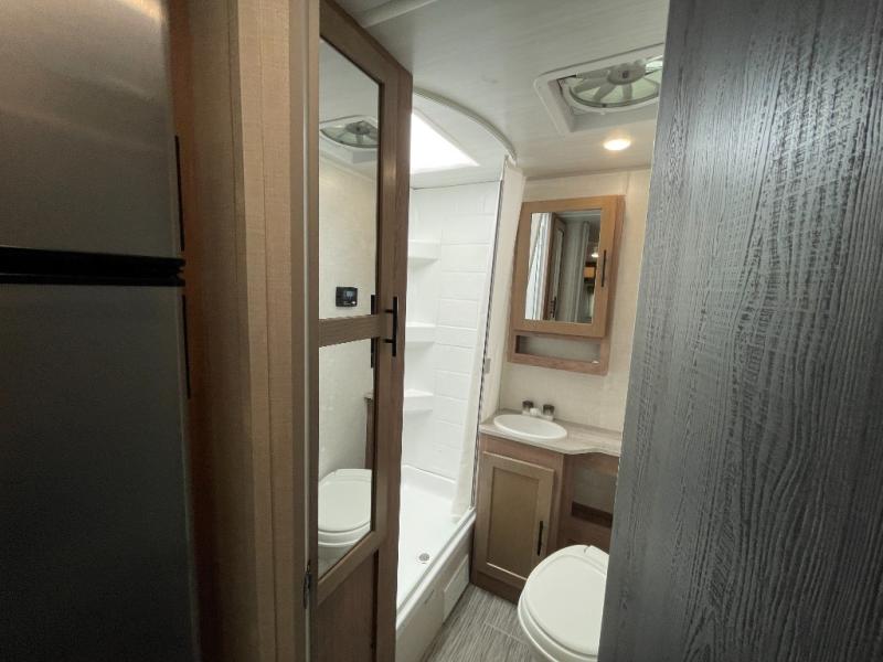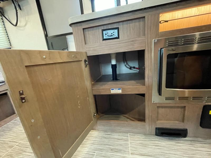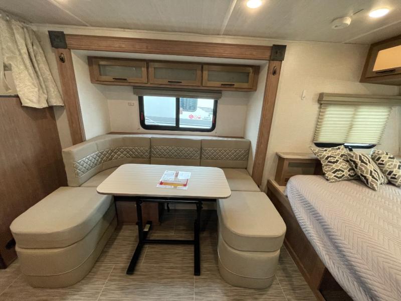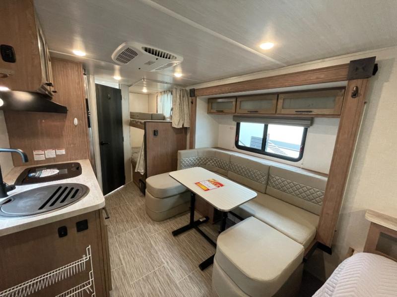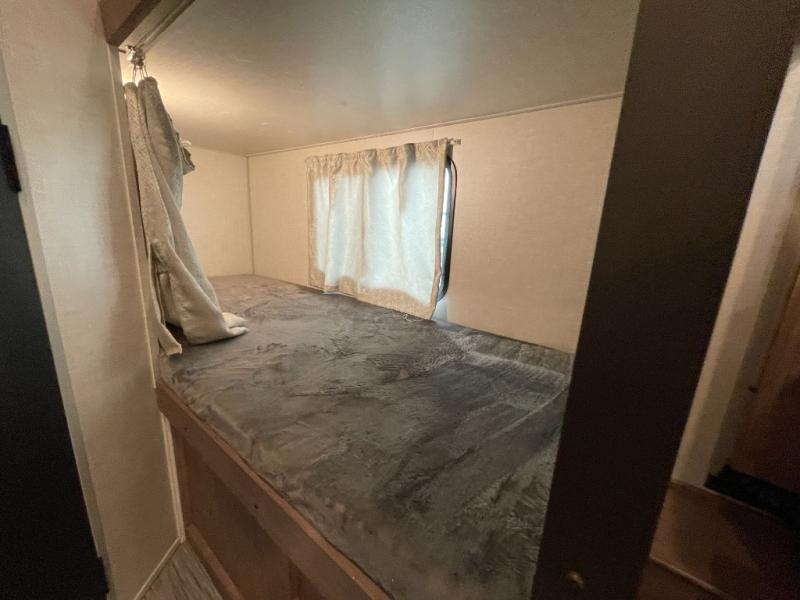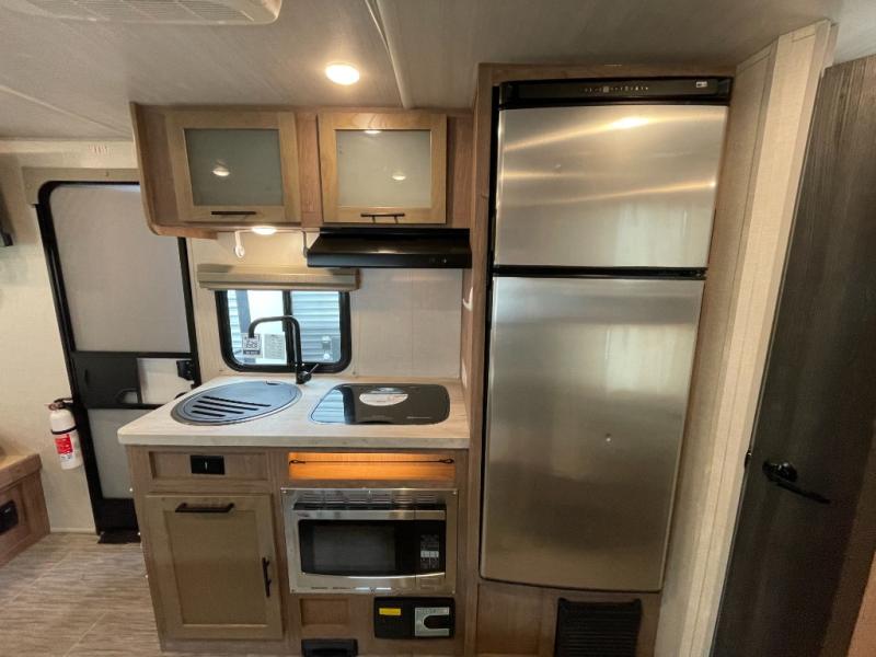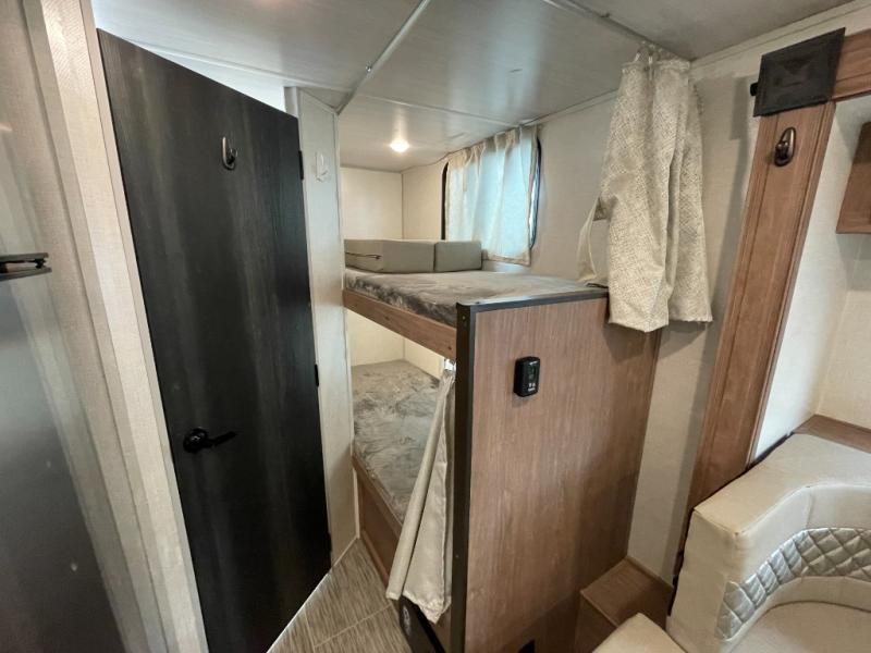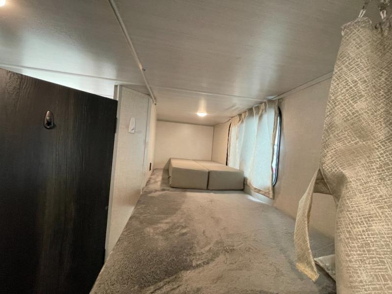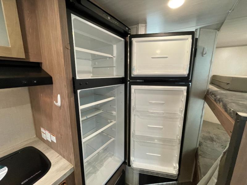 This No Boundaries travel trailer will make your life easier with its bunk beds, chaise lounge, and queen-size bed. Now you can bring along your favorite people without worrying where they will sleep at night. The single slide gives you more space for staying inside and spending time together, and there is an entertainment center that you can use while you're in there. This trailer also has great storage with the bathroom closet, kitchen refrigerator, overhead cabinets, and exterior pass-through storage. You'll also have a 14' power awning that will protect you while you're outside enjoying the weather.
