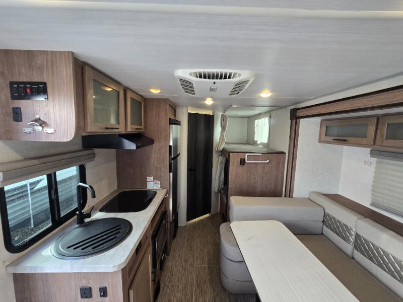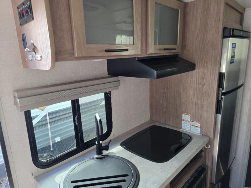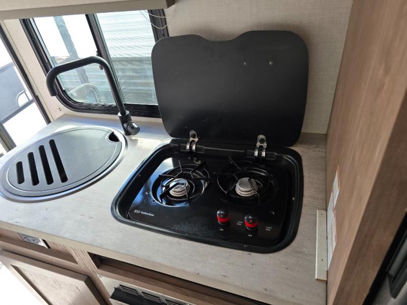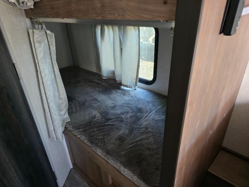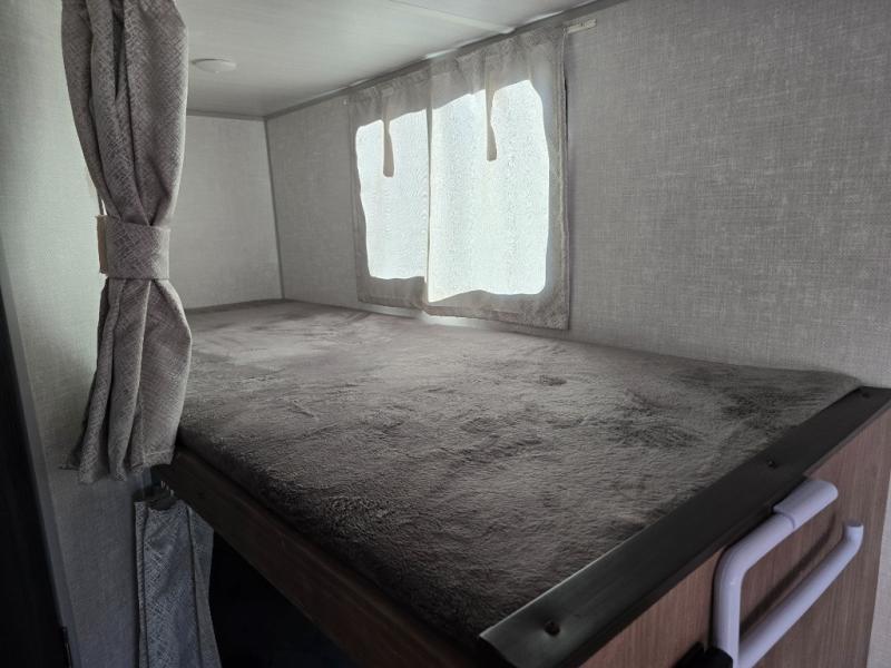 This No Boundaries travel trailer will make your life easier with its bunk beds, chaise lounge, and queen-size bed. Now you can bring along your favorite people without worrying where they will sleep at night. The single slide gives you more space for staying inside and spending time together, and there is an entertainment center that you can use while you're in there. This trailer also has great storage with the bathroom closet, kitchen refrigerator, overhead cabinets, and exterior pass-through storage. You'll also have a 14' power awning that will protect you while you're outside enjoying the weather.