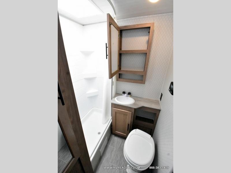 If you want to break free from the travel constraints of standard trailers, then you must choose the Forest River No Boundaries travel trailer or toy hauler because they are rugged and ready for adventure! These trailers offer you a Rhino Rack RVT track to bring along your kayaks or fishing equipment, high-performance vinyl furniture to relax on, a USB charging station to power your electronics, and a Cold Weather Package to keep you warm during the cold season. You'll also have satin matte-finish six-lug wheels wrapped in all-terrain tires for an exceptional ride.