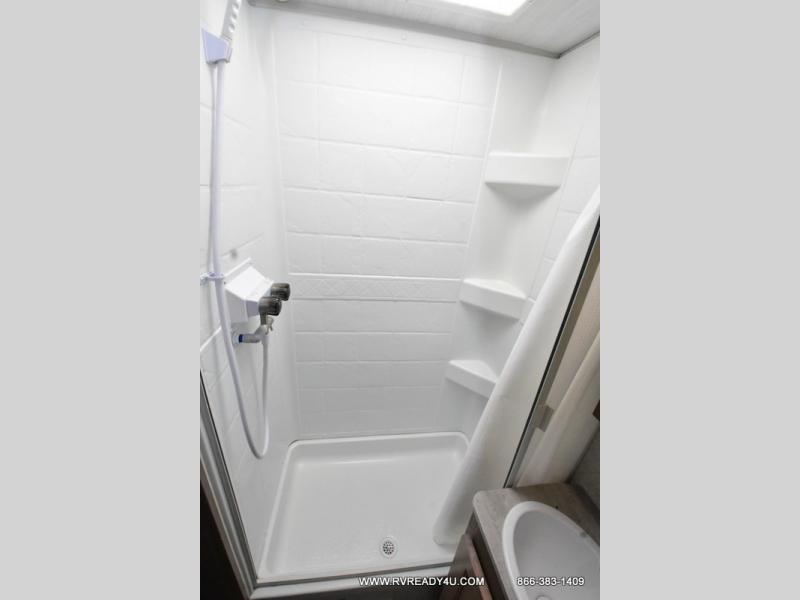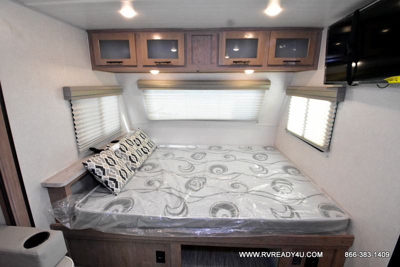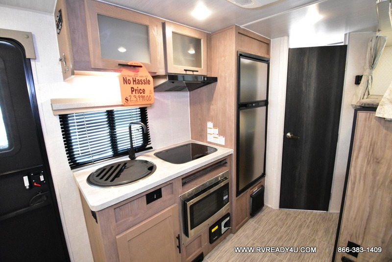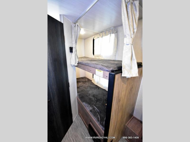 This No Boundaries travel trailer will make your life easier with its bunk beds, chaise lounge, and queen-size bed. Now you can bring along your favorite people without worrying where they will sleep at night. The single slide gives you more space for staying inside and spending time together, and there is an entertainment center that you can use while you're in there. This trailer also has great storage with the bathroom closet, kitchen refrigerator, overhead cabinets, and exterior pass-through storage. You'll also have a 14' power awning that will protect you while you're outside enjoying the weather.