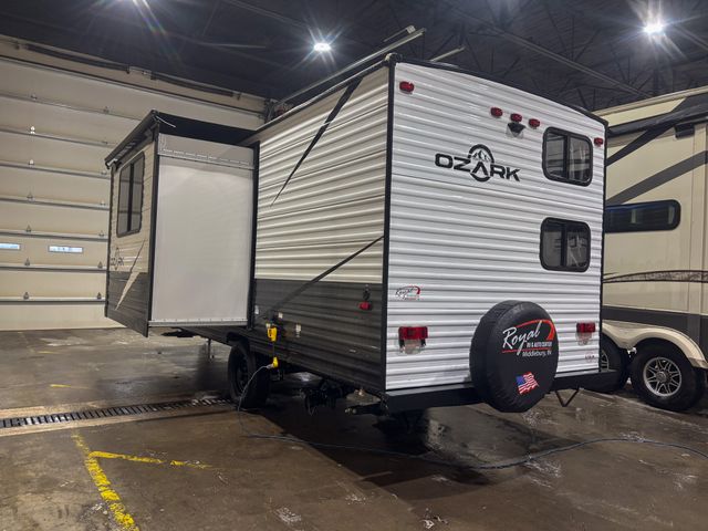Whatever journey you choose to take, the Forest River Ozark travel trailer or toy hauler will be well prepared to make that journey the best it can be! You'll have a full-length power awning with adjustable legs and LED lights to enhance your evenings spent outside. The friction-hinge entry door won't slam against the side of your trailer as soon as you open it, and the double step plus XL folding grab assist handle will create an easy way to enter your trailer. The class-leading window package will make sure that all of your scenic views are easily seen from the inside of your trailer, and the durable one-piece linoleum flooring ensures that cleaning won't be burdensome.