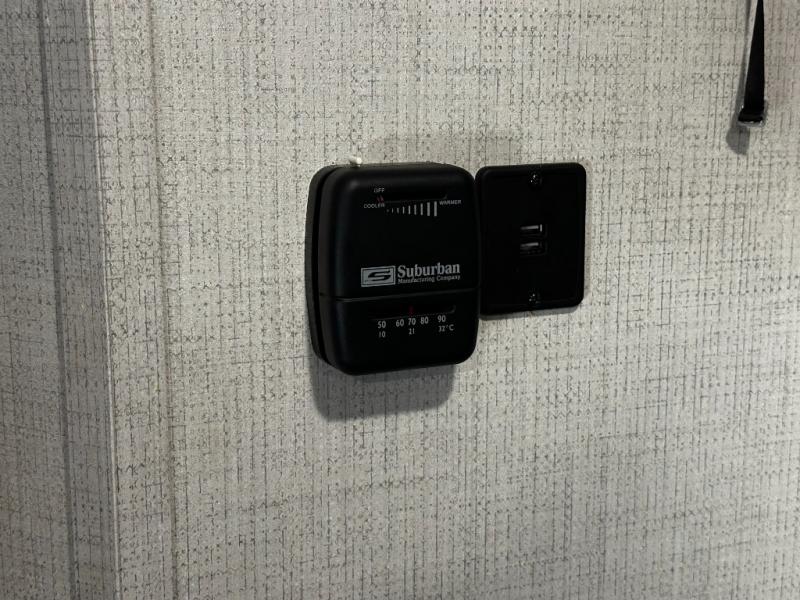 Bathroom & utilities for comfort: You get a full bath with shower, toilet, water system (fresh, gray, black tanks), plus heating (20,000 BTU furnace) and air conditioning — making extended trips or weekend getaways comfortable in various climates.
