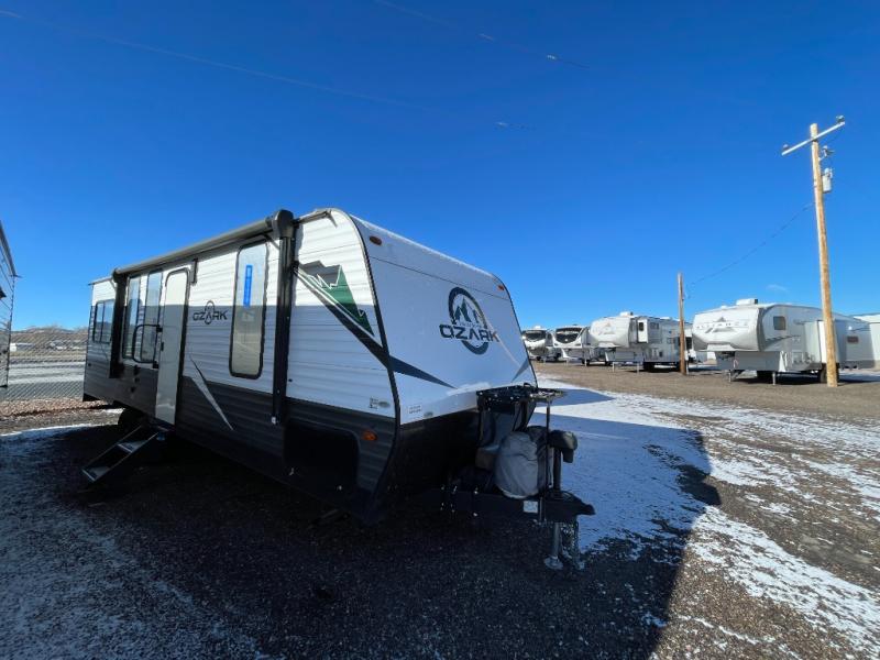 Whatever journey you choose to take, the Forest River Ozark travel trailer or toy hauler will be well prepared to make that journey the best it can be! You'll have a full-length power awning with adjustable legs and LED lights to enhance your evenings spent outside. The friction-hinge entry door won't slam against the side of your trailer as soon as you open it, and the double step plus XL folding grab assist handle will create an easy way to enter your trailer. The class-leading window package will make sure that all of your scenic views are easily seen from the inside of your trailer, and the durable one-piece linoleum flooring ensures that cleaning won't be burdensome.