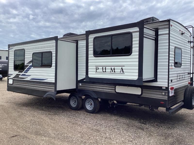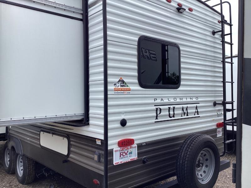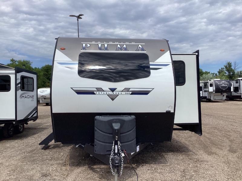 If you're looking for family-fun adventure then you need one of these Palomino Puma fifth wheels, travel trailers, or toy haulers! They are built rugged, easy to tow, and jam packed with features. The Darco wrapped underbelly will protect your units vitals through every season and the AlphaPly roofing membrane covers it. They also have super lube axles and a powder coated frame. Their luxurious interiors feature a spice rack and built-in knife rack in the kitchen, USB charging ports to keep your electronics at 100%, and high density foam mattresses for a good night's rest. The required Advantage package comes with night roller shades for privacy at night, two outside speakers to crank up the tunes while you play cornhole, and an outside shower to keep the dirt outside where it belongs, plus so much more!