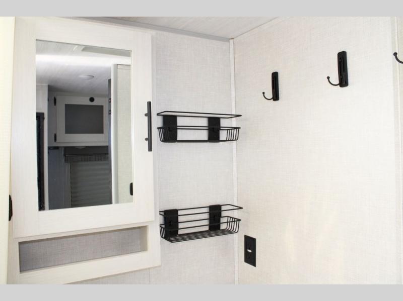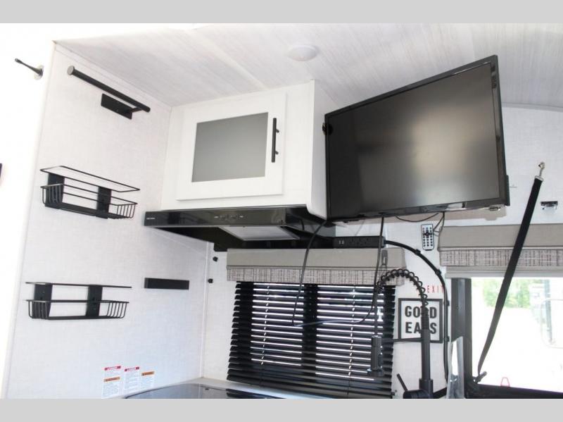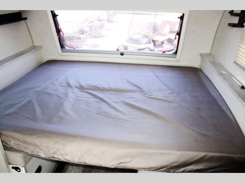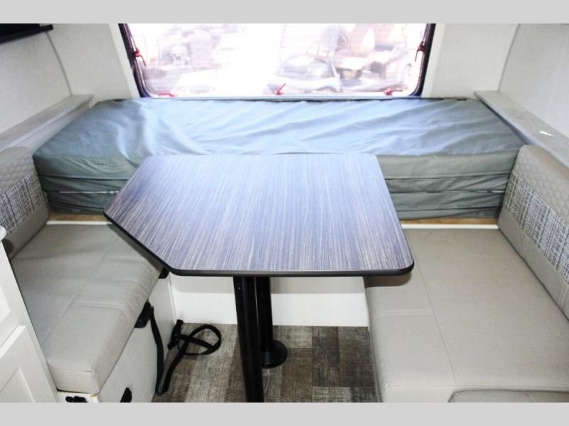 Weekends at the lake just got sweeter in this cozy R-Pod travel trailer. You can prepare your meals each day on the two burner recessed cooktop, or in the convection microwave. There is a sofa to relax on with a good book, plus a booth dinette up front that features a Murphy bed you can fold down at night. This model also includes a refrigerator to keep your perishables fresh, and a pantry to store snacks and dry goods.