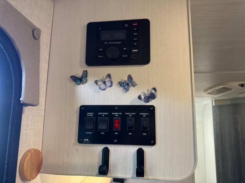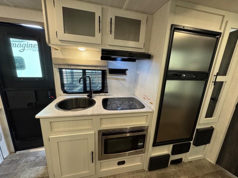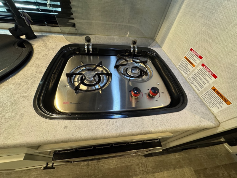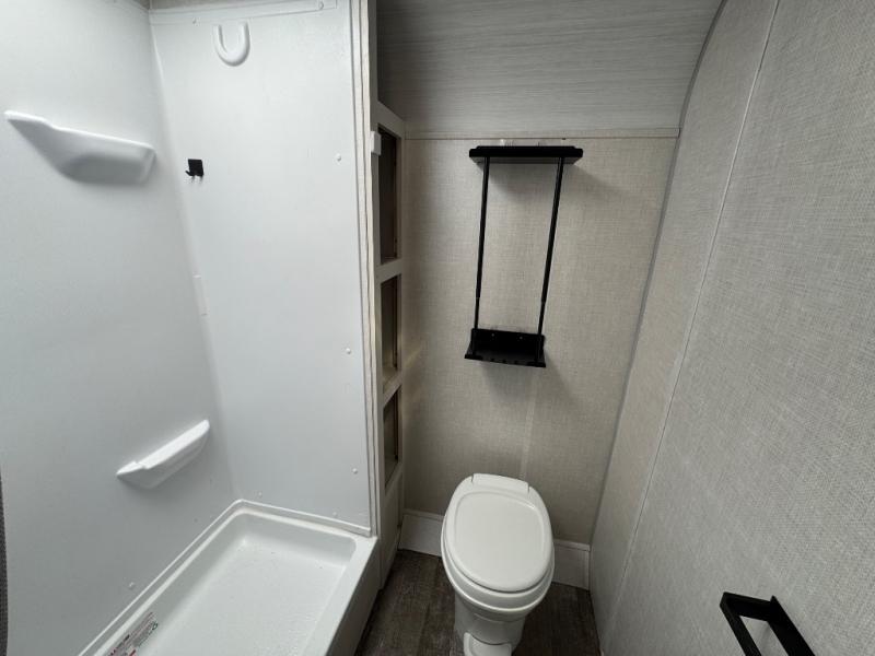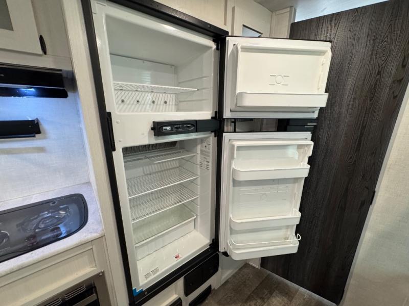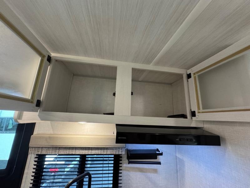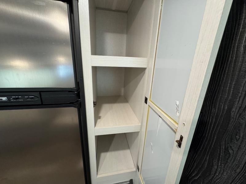 The whole family will enjoy this trailer with sleeping space for five between the bunk beds, the queen Murphy bed and the second sofa within the slide out. This sofa also includes a table for dining, and there is a closet to hang your clothes. During the day you will be able to relax inside while visiting with the cook in the kitchen with full amenities including a pantry for dry good storage. And the bathroom includes a toilet, linen storage, and a shower with a sink, so load up and head out to easily set up and enjoy your own accommodations in the great outdoors.