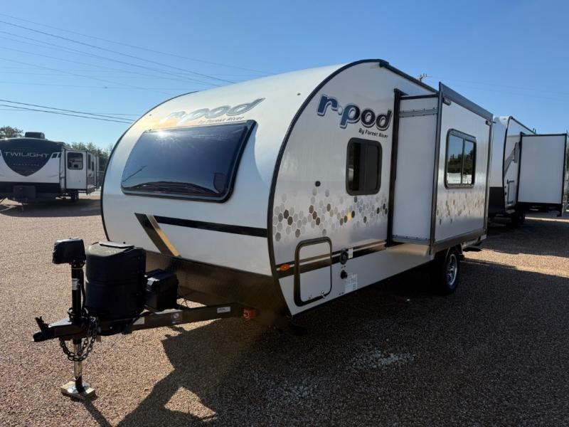 The Forest River R-Pod travel trailer is an excellent choice for lightweight towing and accommodating amenities! There are some enticing inclusions for the R-Pod, like the Azdel composite panels that will completely withstand water damage and the central vacuum system that will make it easy to clean up messes. The R-Pod has the largest refrigerator in its class, and there is also a black glass entrance door that enhances the sleek look of the stylish exterior. The R-Pod has been prepped for a solar panel and a back-up camera, and it also comes with an independent suspension torsion axle for a smooth ride to the campsite.