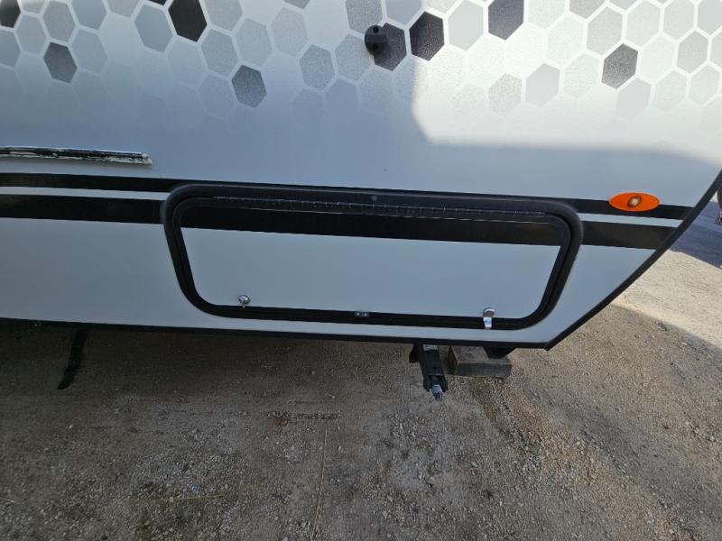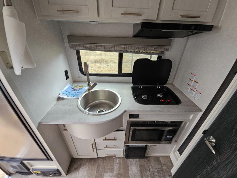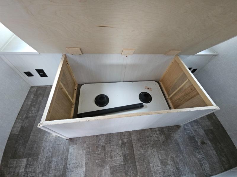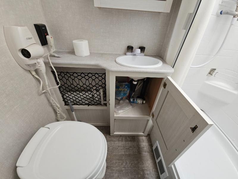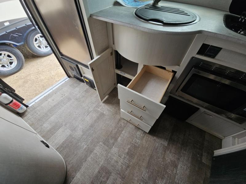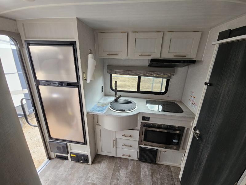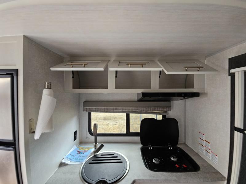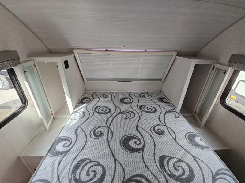 You are going to love waking up every camping weekend in this cute R-Pod travel trailer which features plenty of space and loads of storage for all of your things. The rear kitchen is unique and provides a large window above the stove top and sink so that you can feel like you are cooking right outdoors even on a day when the weather isn't perfect. The U-shaped dinette within the slide out provides more interior walking space, and it can easily be turned into an extra sleeping spot if needed. The front RV queen bed will allow you to wake refreshed for each new day of adventure, and you will appreciate the windows on each side for cross ventilation and a great view of your surroundings.