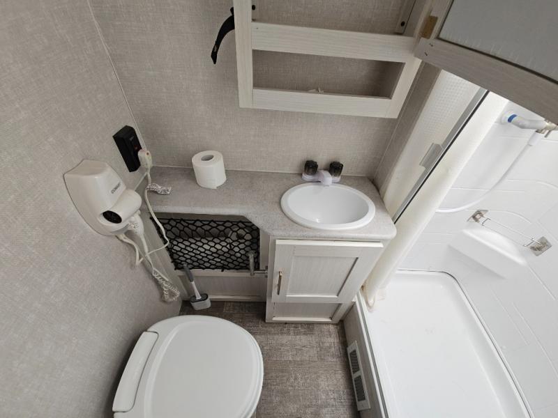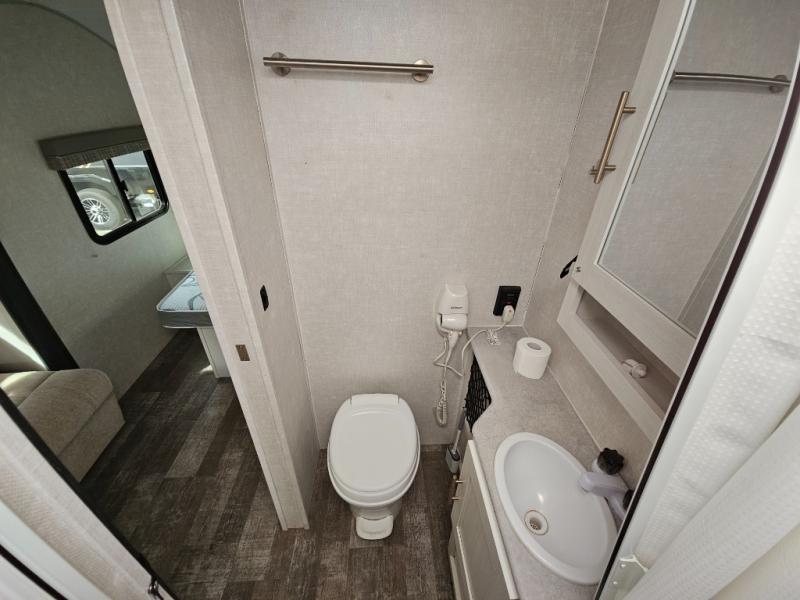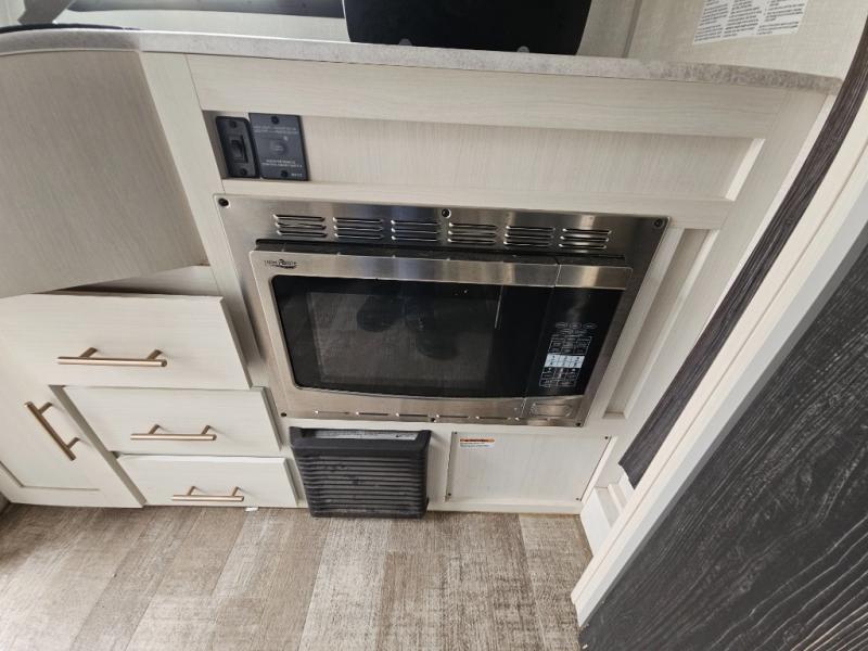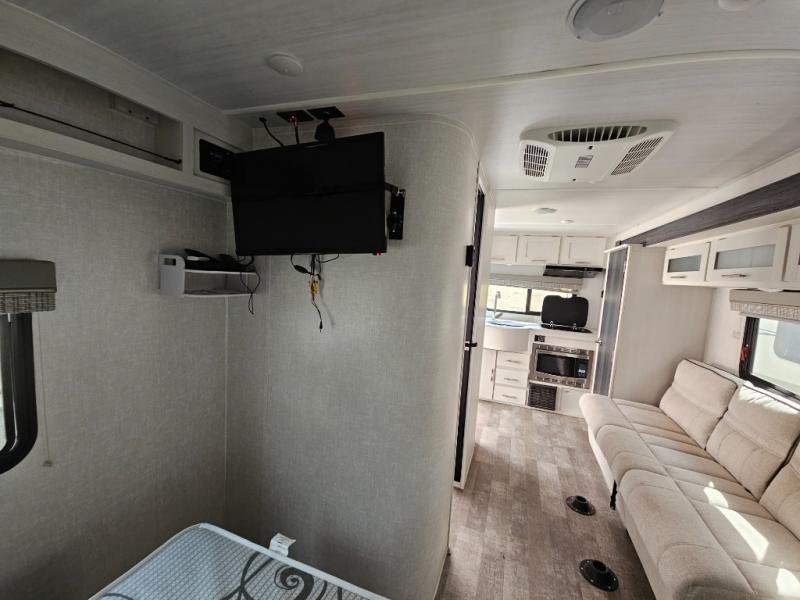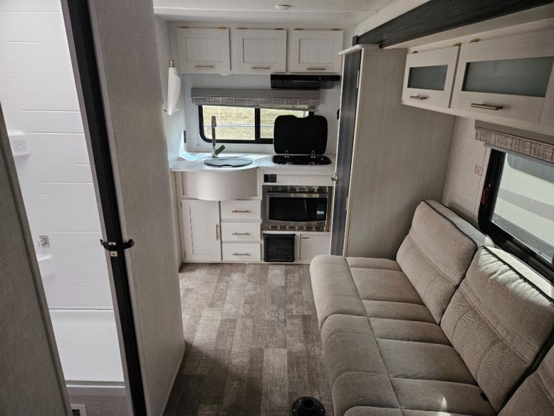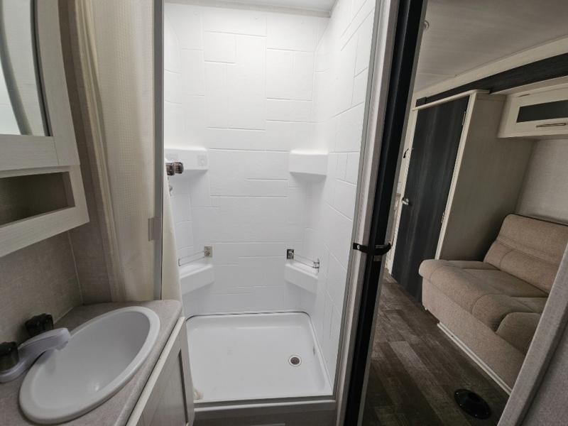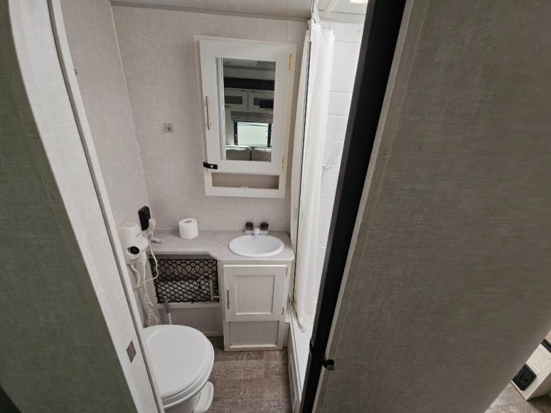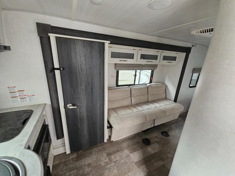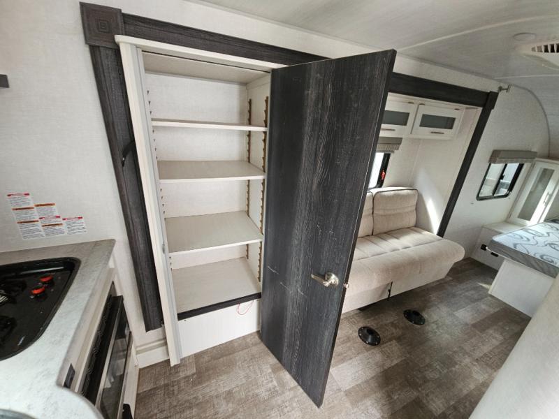 You are going to love waking up every camping weekend in this cute R-Pod travel trailer which features plenty of space and loads of storage for all of your things. The rear kitchen is unique and provides a large window above the stove top and sink so that you can feel like you are cooking right outdoors even on a day when the weather isn't perfect. The U-shaped dinette within the slide out provides more interior walking space, and it can easily be turned into an extra sleeping spot if needed. The front RV queen bed will allow you to wake refreshed for each new day of adventure, and you will appreciate the windows on each side for cross ventilation and a great view of your surroundings.