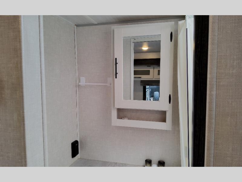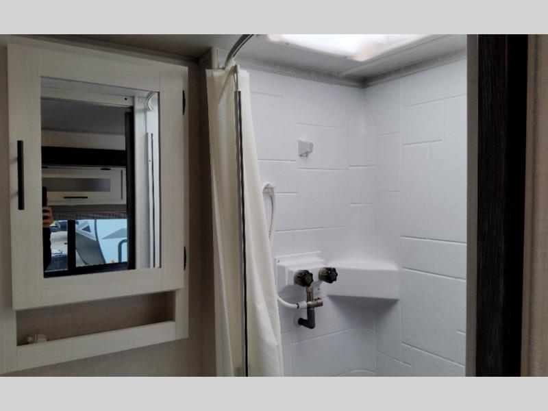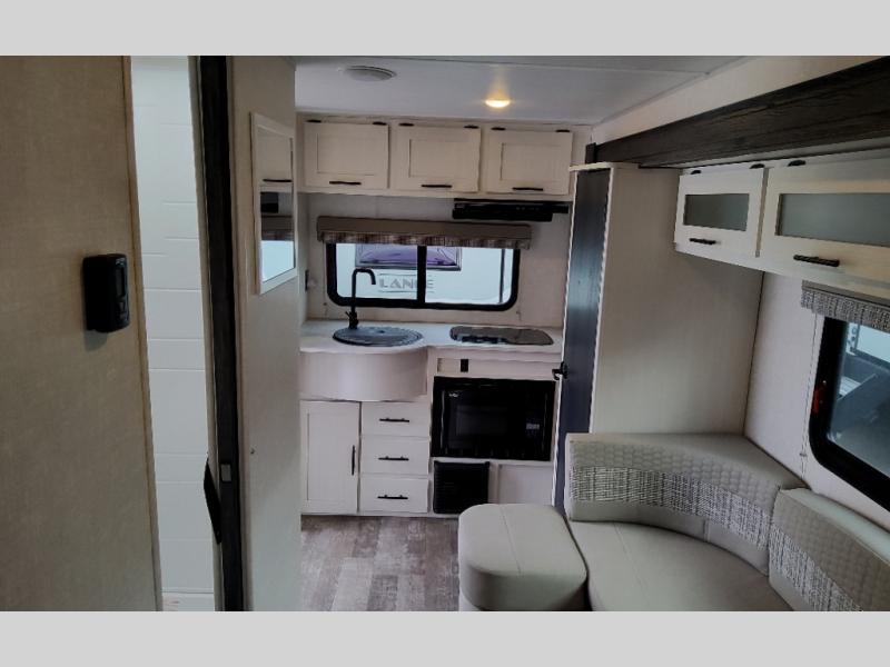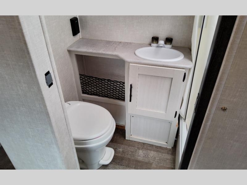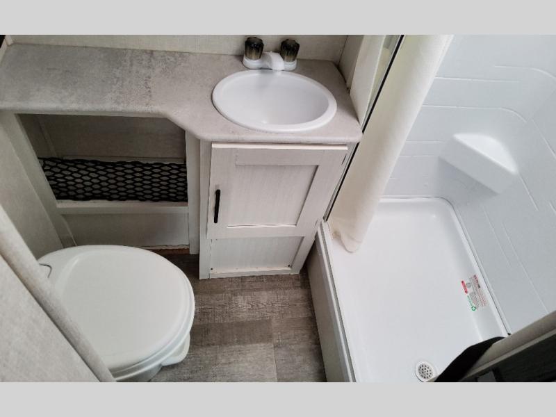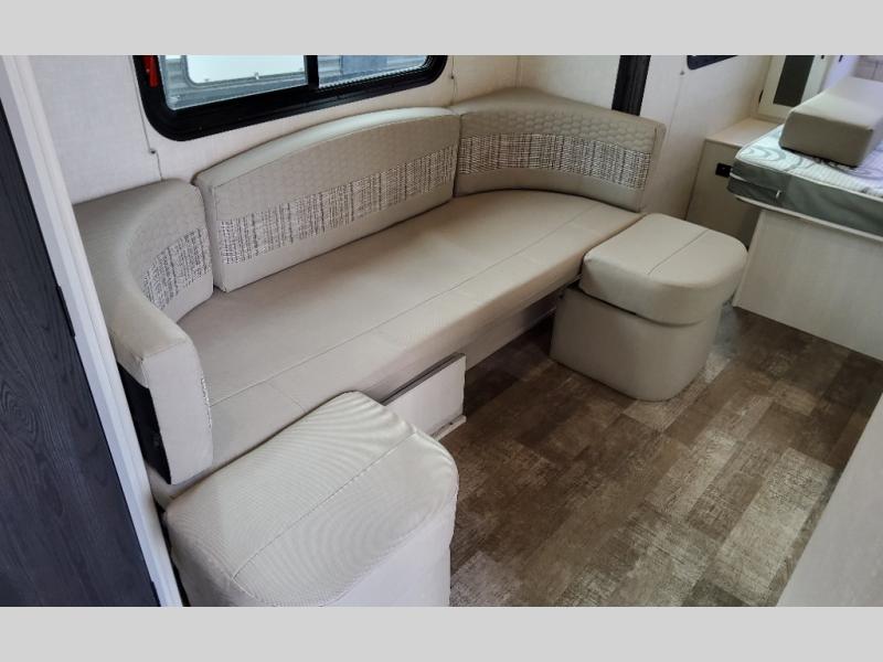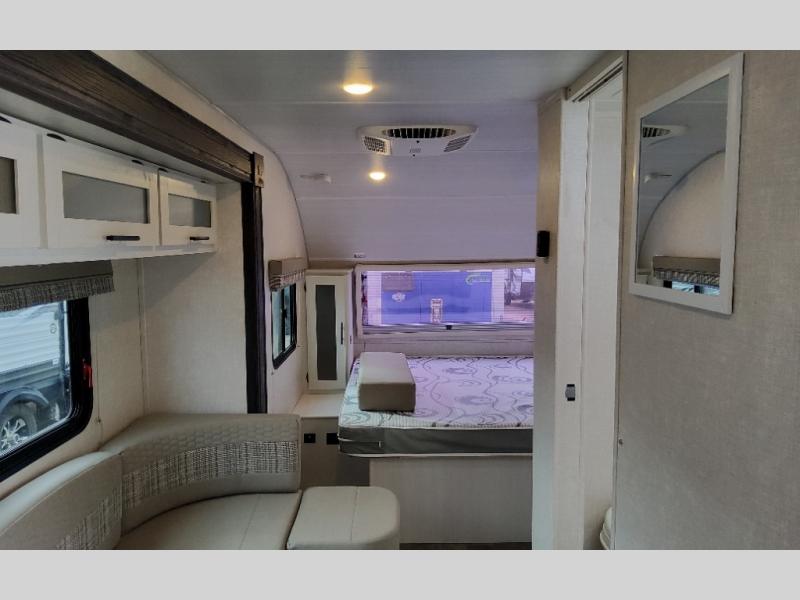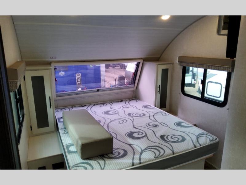 You are going to love waking up every camping weekend in this R-Pod travel trailer which features plenty of space and loads of storage for all of your things. The rear kitchen is unique and provides a large window above the cooktop and sink so that you can feel like you are cooking right outdoors even on a day when the weather isn't perfect. The U-shaped dinette and pantry within the slide out provides dining and sleeping space, dry good storage, as well as more interior floor space. The front RV queen bed will allow you to wake refreshed for each new day of adventure with extra walking around space, and you will appreciate the windows on each side for cross ventilation, as well as a great view of your surroundings.