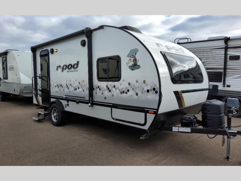 The Forest River R-Pod travel trailer is an excellent choice for lightweight towing and accommodating amenities! There are some enticing inclusions for the R-Pod, like the Azdel composite panels that will completely withstand water damage and the central vacuum system that will make it easy to clean up messes. The R-Pod has the largest refrigerator in its class, and there is also a black glass entrance door that enhances the sleek look of the stylish exterior. The R-Pod has been prepped for a solar panel and a back-up camera, and it also comes with an independent suspension torsion axle for a smooth ride to the campsite.