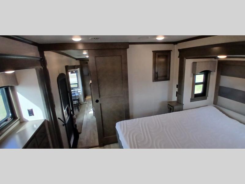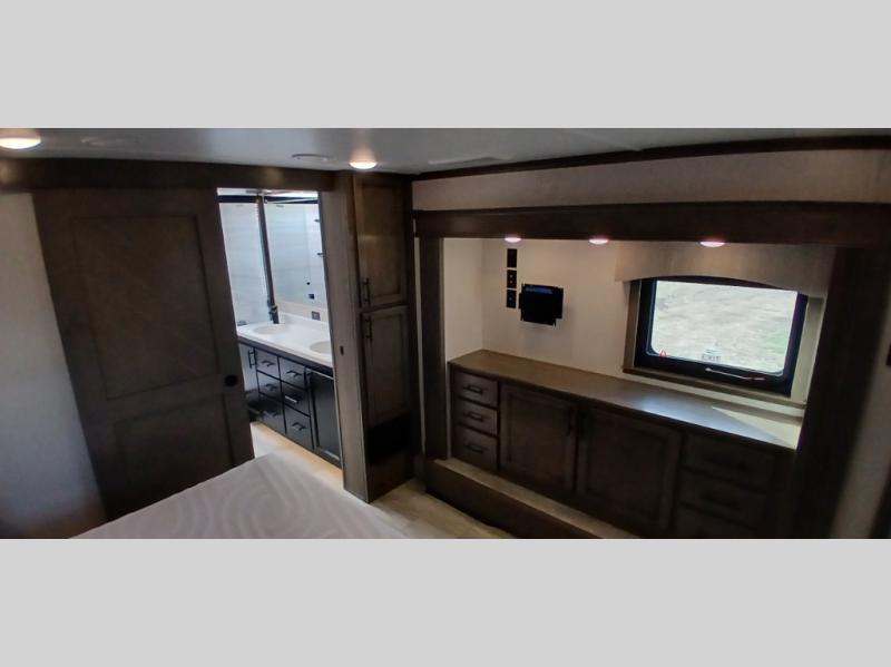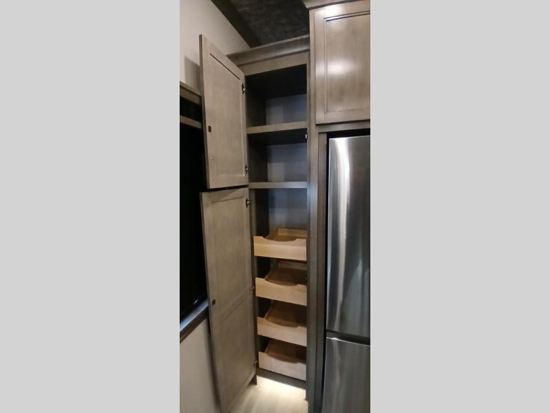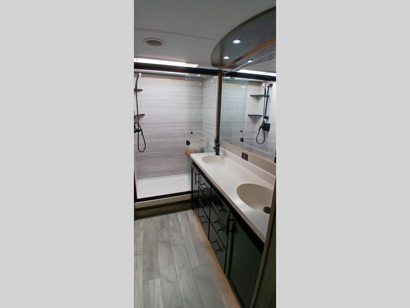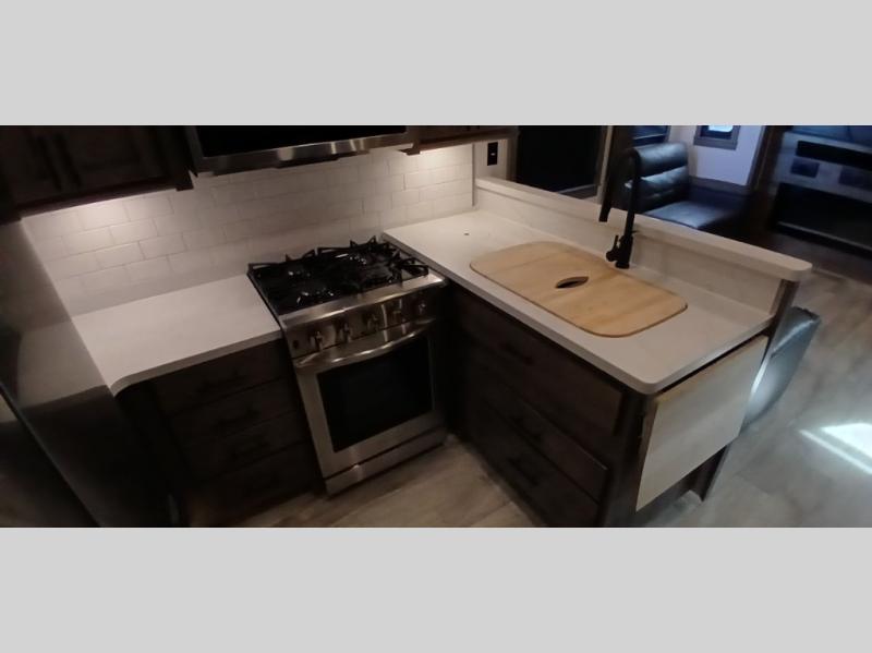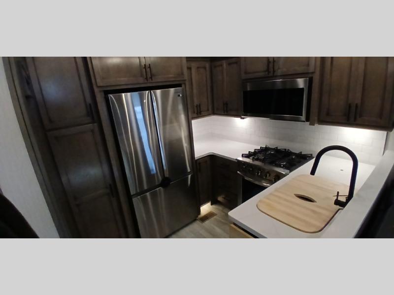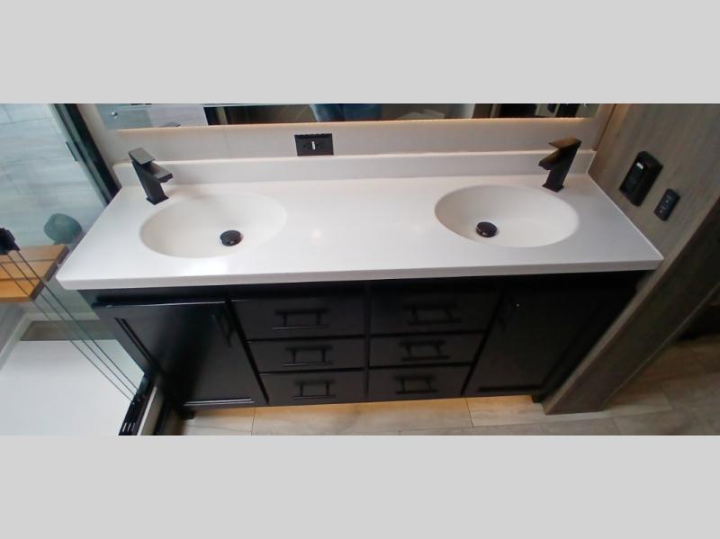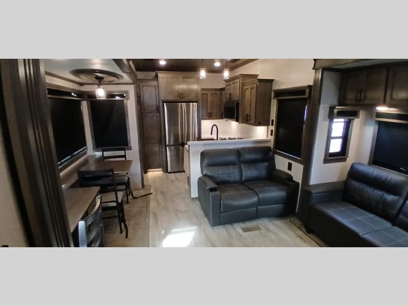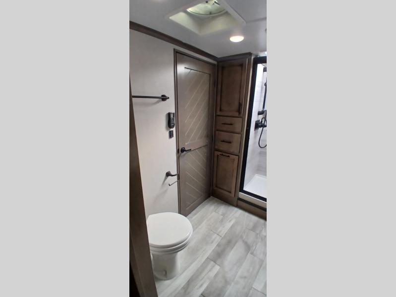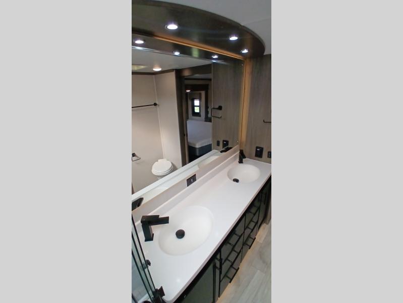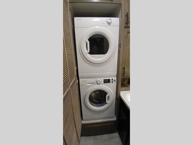 The Forest River RiverStone fifth wheels and toy haulers are luxurious units that have it all! You'll find an automatic six-point hydraulic level-up system to keep your unit in place, and there is preparation for a four-camera observation system. The King Wi-Fi Max router and omni-directional Wi-Fi antenna/extender will help you stay connected to the outside world, and you'll never have to overpack again since the Splendid “Astral” stackable washer and dryer will let you clean the small amount of clothes you've brought with you. Another high luxury is the Fischer Paykal dishwasher which will allow you to spend more time enjoying your camp life and less time cleaning up. Each unit is built with an LCI Road Armour suspension system, dual-pane frameless windows, a full docking station, a 190W solar panel, and a Firefly integrated touch control system.