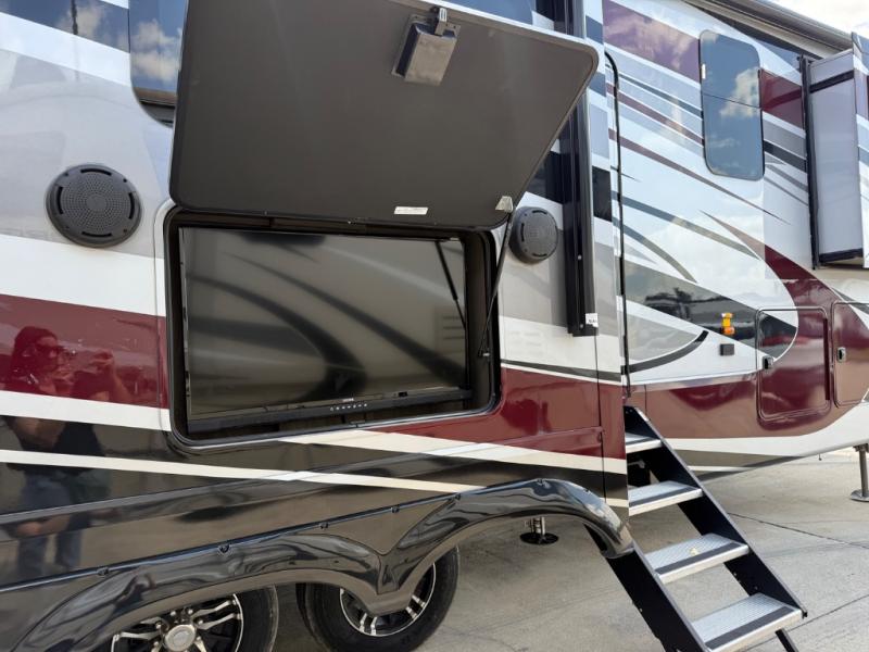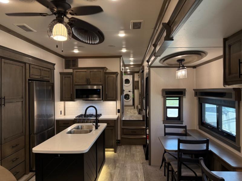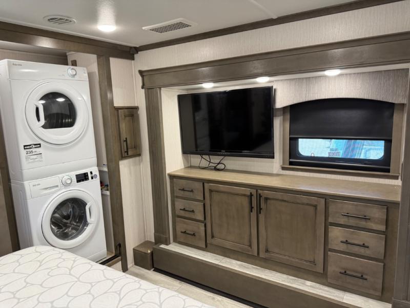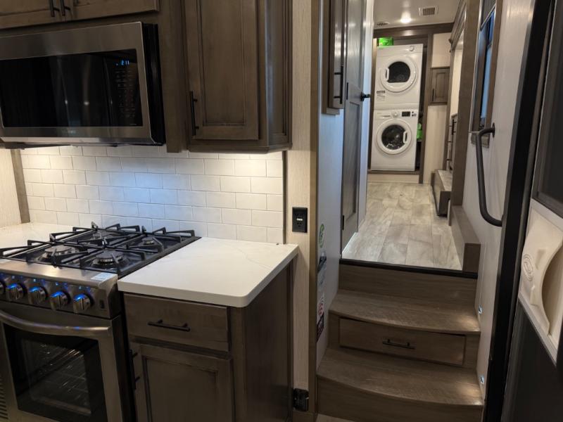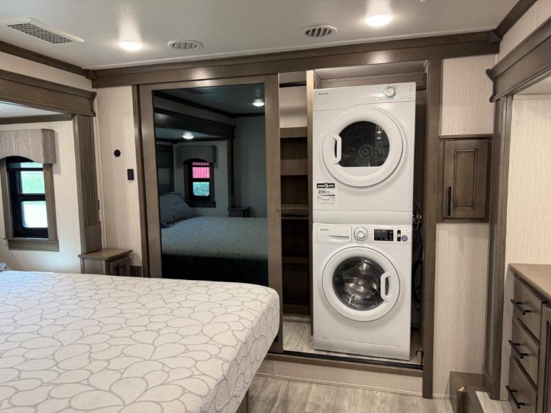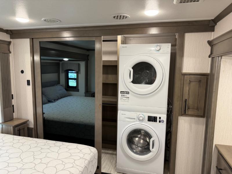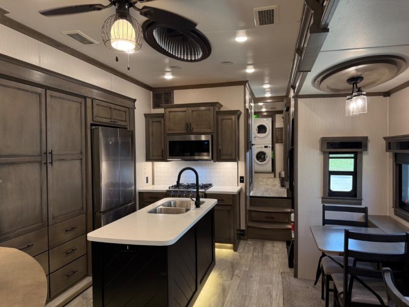 The Forest River RiverStone fifth wheels and toy haulers are luxurious units that have it all! You'll find an automatic six-point hydraulic level-up system to keep your unit in place, and there is preparation for a four-camera observation system. The King Wi-Fi Max router and omni-directional Wi-Fi antenna/extender will help you stay connected to the outside world, and you'll never have to overpack again since the Splendid “Astral” stackable washer and dryer will let you clean the small amount of clothes you've brought with you. Another high luxury is the Fischer Paykal dishwasher which will allow you to spend more time enjoying your camp life and less time cleaning up. Each unit is built with an LCI Road Armour suspension system, dual-pane frameless windows, a full docking station, a 190W solar panel, and a Firefly integrated touch control system.