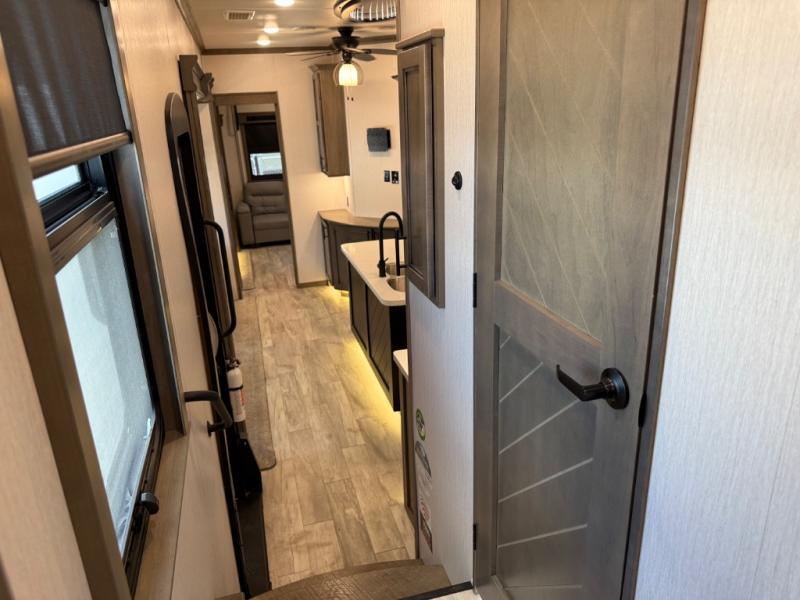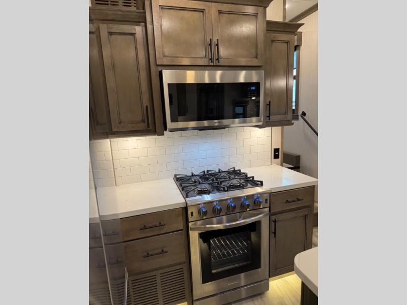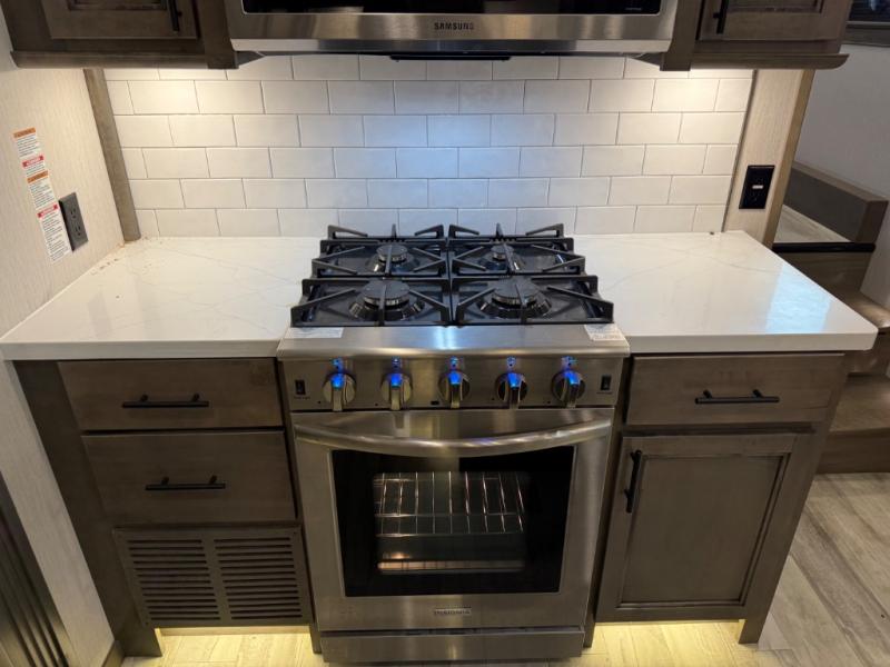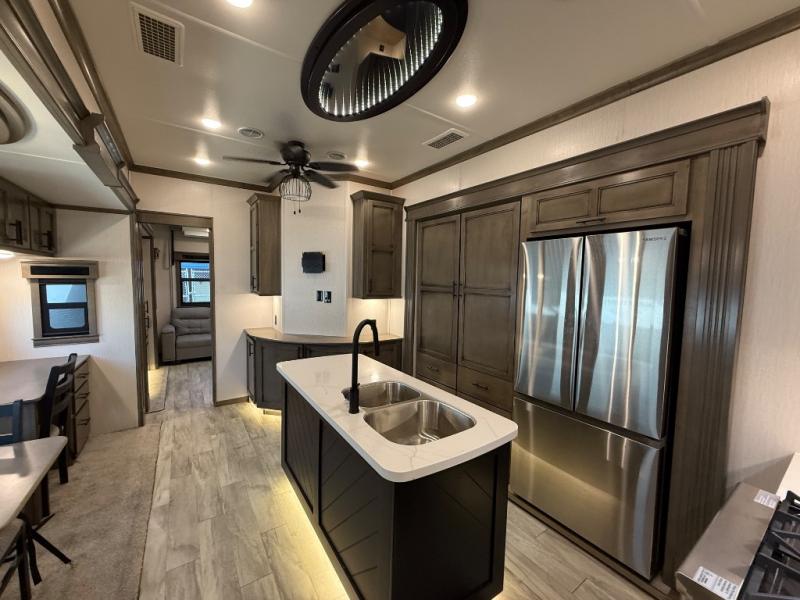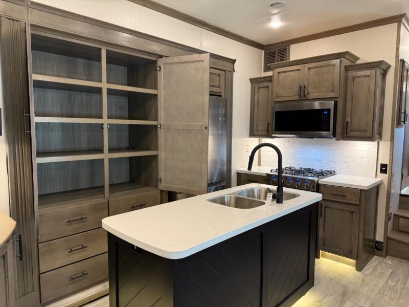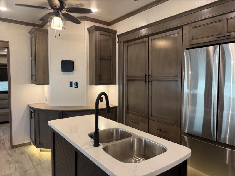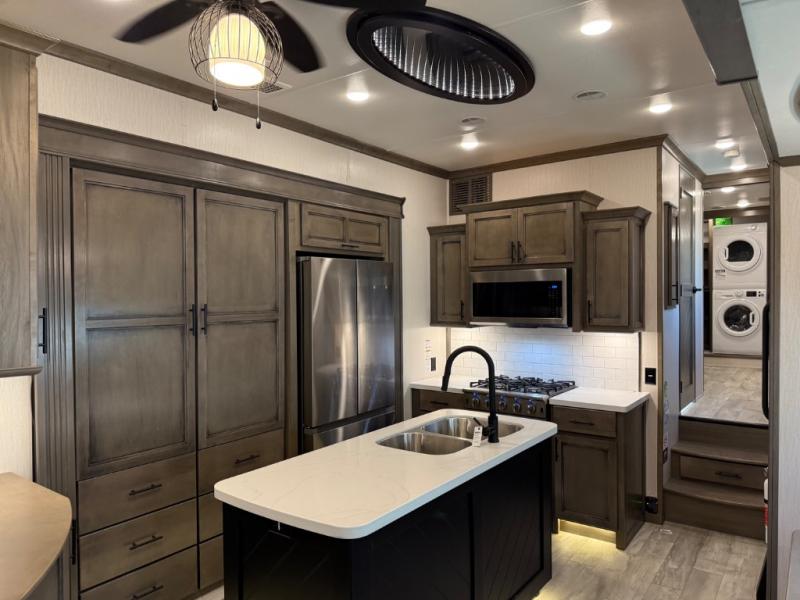 The Forest River RiverStone fifth wheels and toy haulers are luxurious units that have it all! You'll find an automatic six-point hydraulic level-up system to keep your unit in place, and there is preparation for a four-camera observation system. The King Wi-Fi Max router and omni-directional Wi-Fi antenna/extender will help you stay connected to the outside world, and you'll never have to overpack again since the Splendid “Astral” stackable washer and dryer will let you clean the small amount of clothes you've brought with you. Another high luxury is the Fischer Paykal dishwasher which will allow you to spend more time enjoying your camp life and less time cleaning up. Each unit is built with an LCI Road Armour suspension system, dual-pane frameless windows, a full docking station, a 190W solar panel, and a Firefly integrated touch control system.
