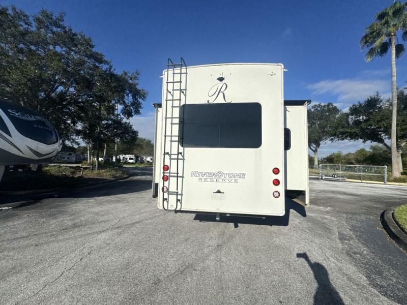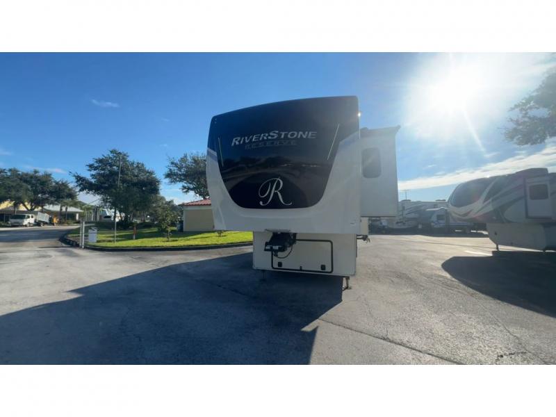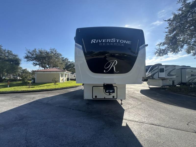 Let your Forest River RiverStone Reserve series fifth wheel take you to journeys unimaginable! Each unit comes with a mandatory Ultimate Electronics Package that offers a JBL premium sound system with DVD player, a 1,000W inverter, a Firefly integrated touch control system, and a 190W solar panel. You will have a King Wi-Fi Max router and omni-directional Wi-Fi antenna/extender, so you can stay connected with your favorite electronic devices. There is a full docking station to help you with your hook-ups, and the two high-performance Quiet Cool A/Cs will help you cool down on a hot day. The hydraulic slide outs are easy to put into place, and the 2" receiver for a bike rack will allow you to bring some bicycles for an afternoon ride.