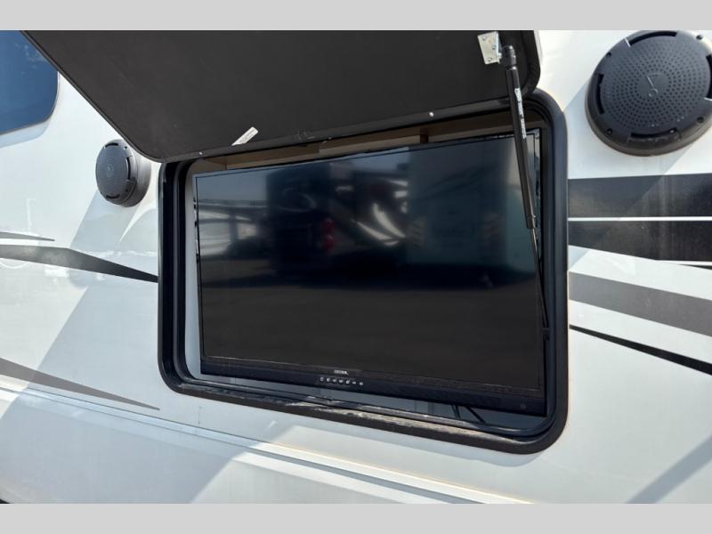 Let your Forest River RiverStone Reserve series fifth wheel take you to journeys unimaginable! Each unit comes with a mandatory Ultimate Electronics Package that offers a JBL premium sound system with DVD player, a 1,000W inverter, a Firefly integrated touch control system, and a 190W solar panel. You will have a King Wi-Fi Max router and omni-directional Wi-Fi antenna/extender, so you can stay connected with your favorite electronic devices. There is a full docking station to help you with your hook-ups, and the two high-performance Quiet Cool A/Cs will help you cool down on a hot day. The hydraulic slide outs are easy to put into place, and the 2" receiver for a bike rack will allow you to bring some bicycles for an afternoon ride.