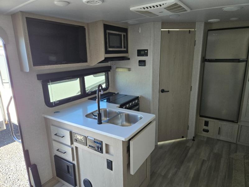 Each Rockwood Mini Lite travel trailer by Forest River is constructed with a fully laminated one-piece walkable roof, sleek frameless windows, and a six-sided full aluminum frame for strength and durability. The 12V thermostatically controlled heated tanks, plus radiant foil in the underbelly, front caps, and slide out floors will allow you to camp well into the colder months, and the 190W roof solar panel will be perfect for a little off-gridding. Each model includes solid surface kitchen countertops, solid wood cabinet doors, night roller shades, plus many more interior features. Having a Teton all in one Wi-Fi booster/LTE prep and antenna on board will allow you to get some work done if it's needed, and the power tongue jack provides hassle-free set up, so you can enjoy more time relaxing!
