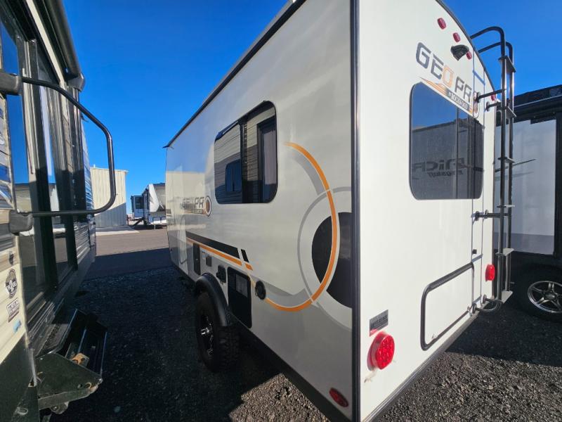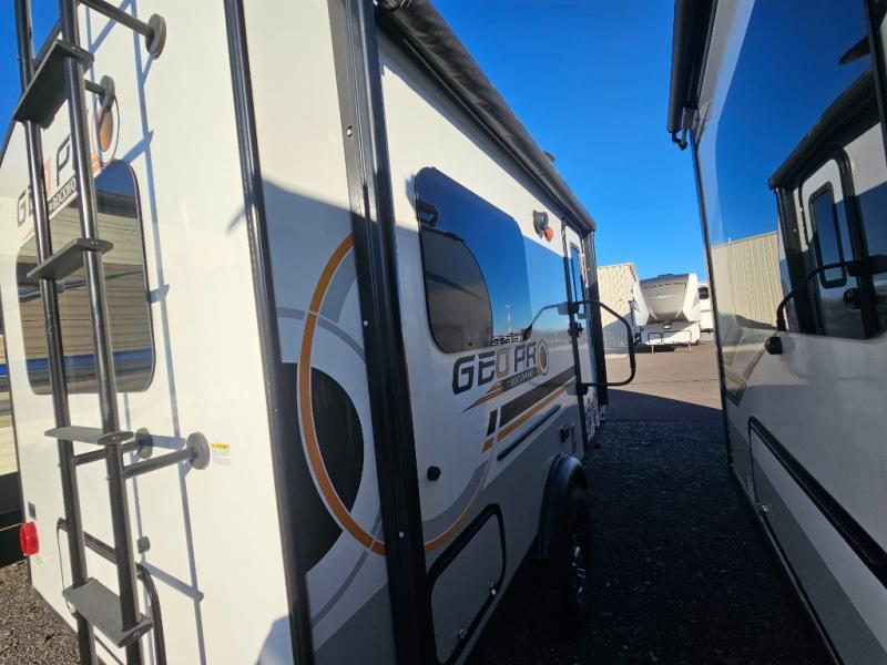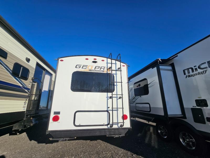 The Rockwood GEO Pro travel trailers and toy hauler by Forest River are ready for all your adventures. The interior and exterior Azdel construction, along with the vacuum laminated roof and walls provide a durable trailer, and the Dexter torsion axles with aluminum wheels make towing easier than ever. There are many convenient amenities, like the 13,500 BTU A/C, the Bluetooth system control panel, and the all-in-one Teton HD TV/WiFi/FM antenna with LTE prep. Each model includes frameless windows, fabric valances and roller shades, and a modern interior that will make you feel right at home. Everything you're looking for in your next RV is in a Rockwood GEO pro by Forest River!