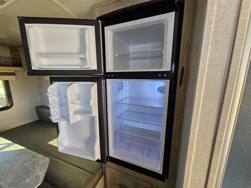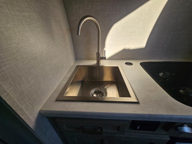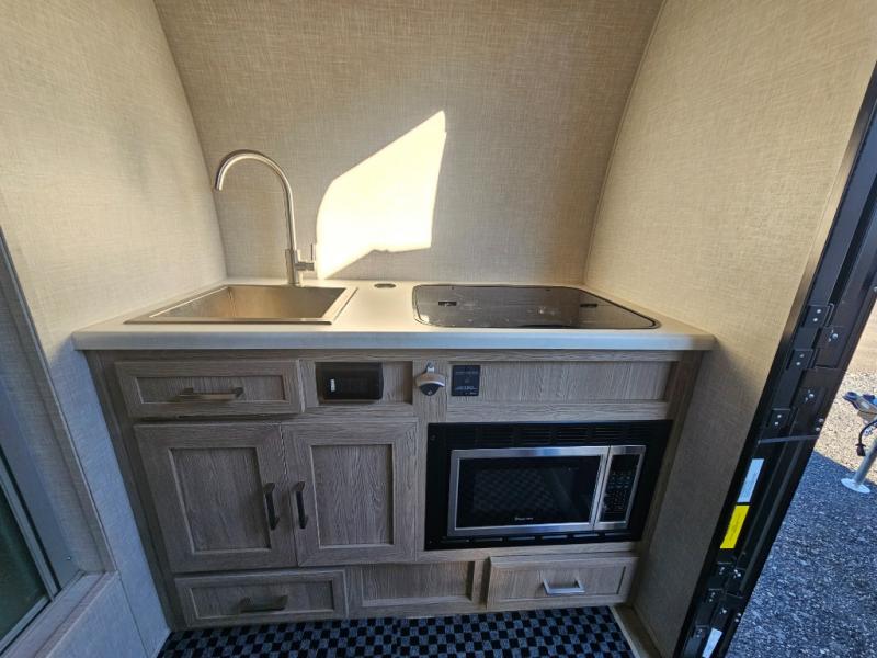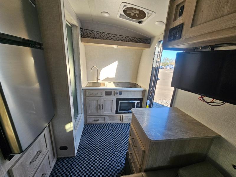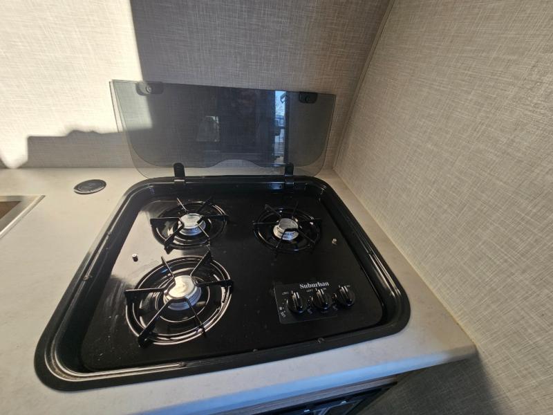 It's easy to see why this model is know a the "Swiss Army Knife" of RVs. It may be the smallest walkable trailer in the lineup, but it doesn't skim on features. The twin beds convert to a king-size bed for your comfort, and there is even a 12V TV to enjoy in the evenings. The kitchen includes a three burner cooktop, a microwave oven, plus a 12V refrigerator for perishables. You'll find overhead compartments for your valuables, and exterior storage for your hiking gear!