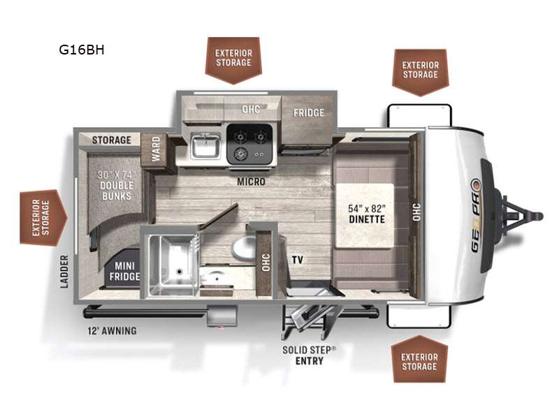 Forest River Rockwood Geo Pro travel trailer G16BH highlights: