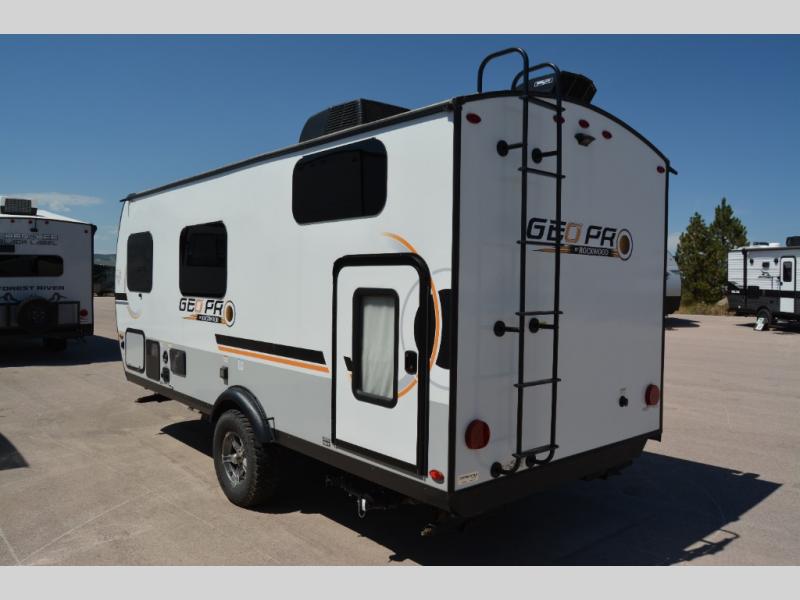The Rockwood GEO Pro travel trailers and toy hauler by Forest River are ready for all your adventures. The interior and exterior Azdel construction, along with the vacuum laminated roof and walls provide a durable trailer, and the Dexter torsion axles with aluminum wheels make towing easier than ever. There are many convenient amenities, like the 13,500 BTU A/C, the Bluetooth system control panel, and the all-in-one Teton HD TV/WiFi/FM antenna with LTE prep. Each model includes frameless windows, fabric valances and roller shades, and a modern interior that will make you feel right at home. Everything you're looking for in your next RV is in a Rockwood GEO pro by Forest River!