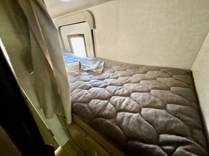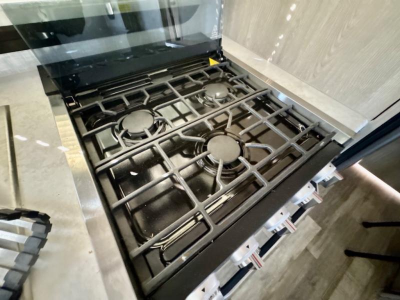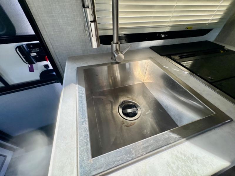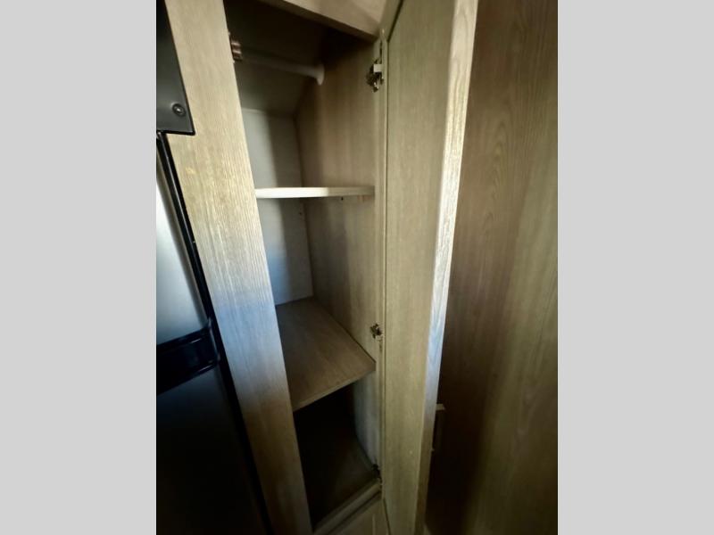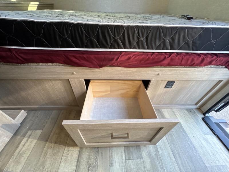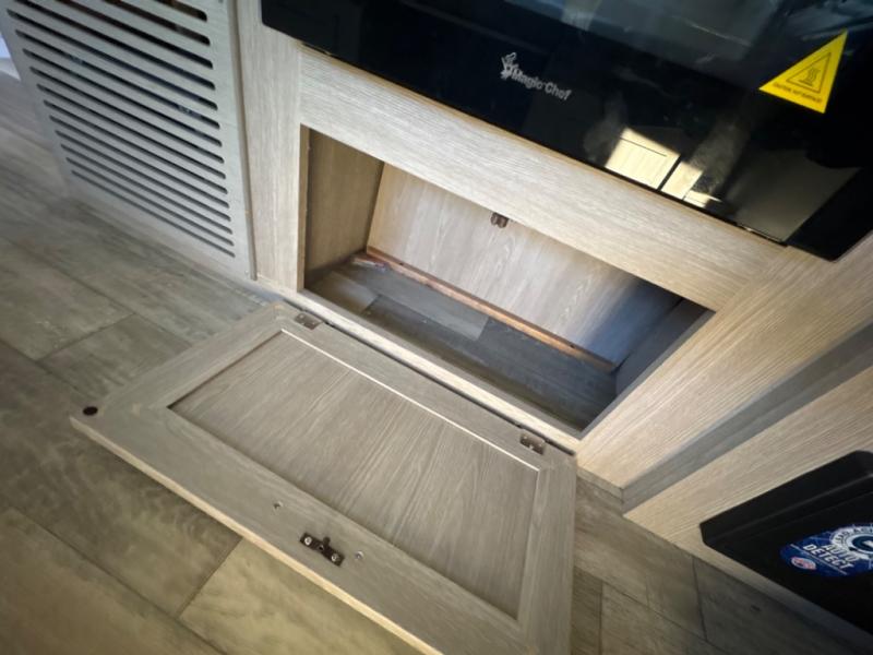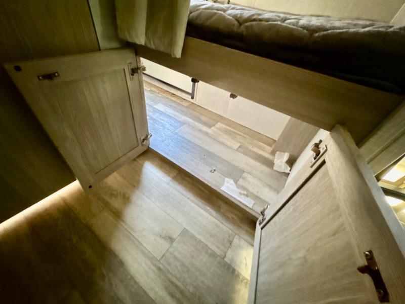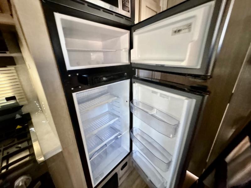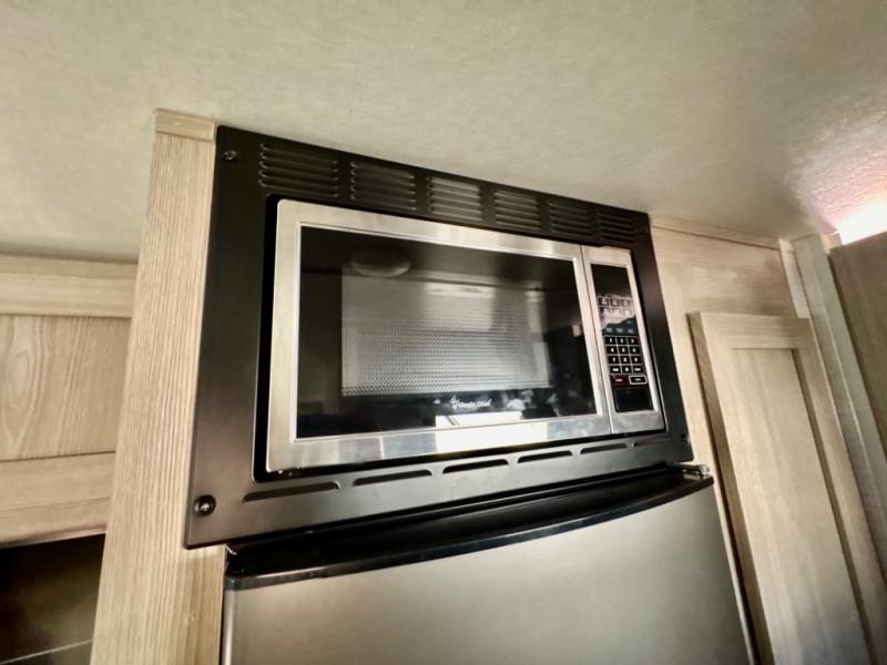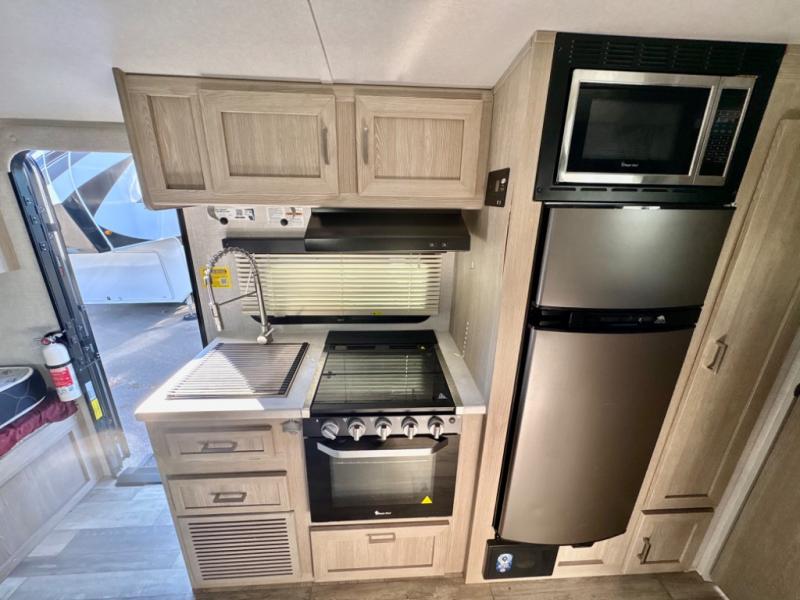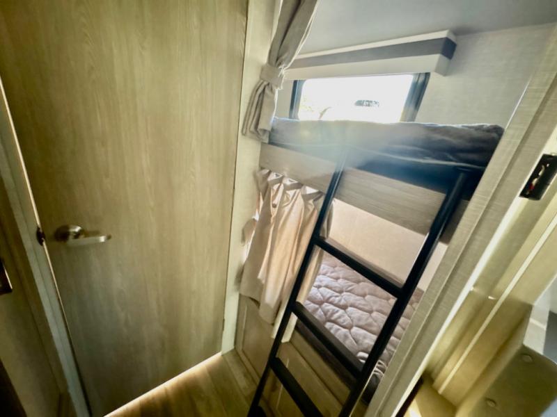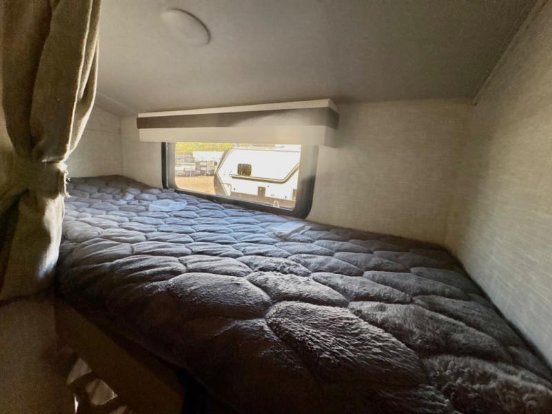 Your going to love camping with your family or friends in this largest bunk model in the GEO Pro lineup. The bunk beds will be perfect for little ones, while you take the front full-size bed. There is also a 44" booth dinette within the slide out for additional sleeping and seating space. The kitchen includes everything the chef will need to prepare meals each day, including a three burner cooktop, a microwave oven, and a 12V refrigerator for perishables. If the weather is nice, you may just find the chef outdoors cooking on the outside griddle under the 14' power awning. And check out the exterior bike door that will be perfect for bikes, luggage, or extra camp gear!