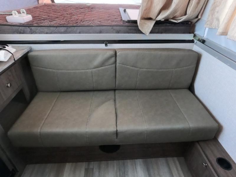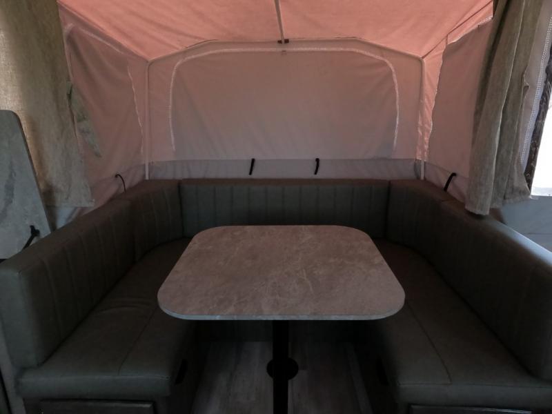 - Sleeps 7 thanks to U-dinette slide, queen tent end, plus sofa bed