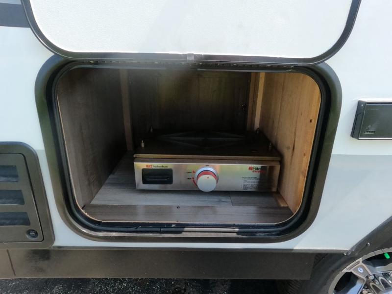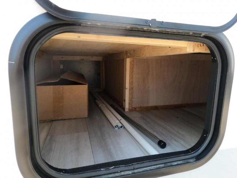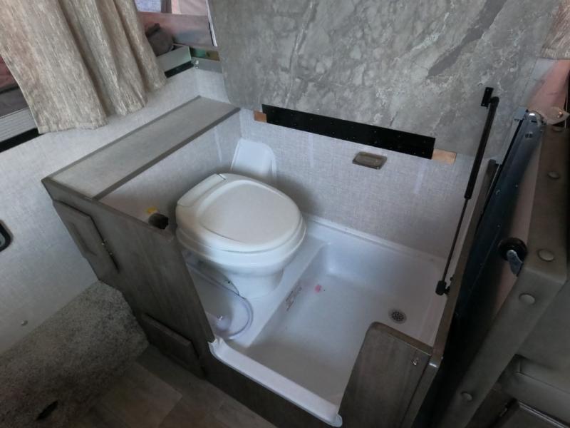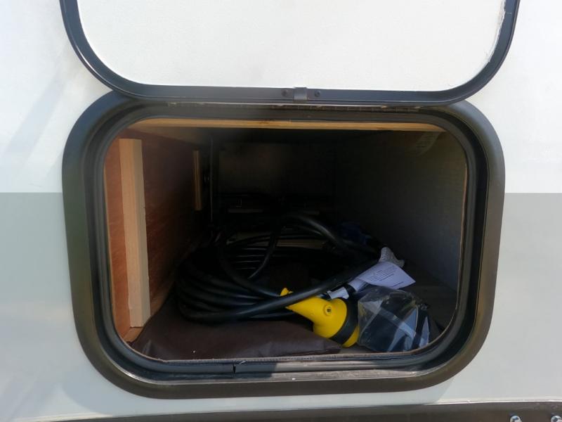 - 20 gal fresh, 12 gal grey/black tanks, wet bath with cassette toilet