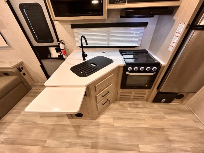 Each Rockwood Mini Lite travel trailer by Forest River is constructed with a fully laminated one-piece walkable roof, sleek frameless windows, and a six-sided full aluminum frame for strength and durability. The 12V thermostatically controlled heated tanks, plus radiant foil in the underbelly, front caps, and slide out floors will allow you to camp well into the colder months, and the 190W roof solar panel will be perfect for a little off-gridding. Each model includes solid surface kitchen countertops, solid wood cabinet doors, night roller shades, plus many more interior features. Having a Teton all in one Wi-Fi booster/LTE prep and antenna on board will allow you to get some work done if it's needed, and the power tongue jack provides hassle-free set up, so you can enjoy more time relaxing!
