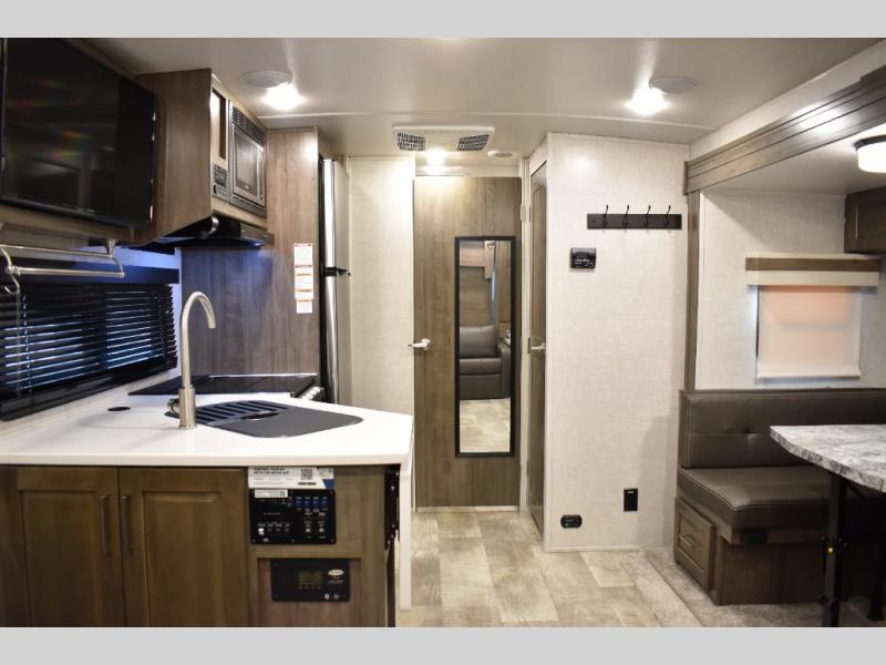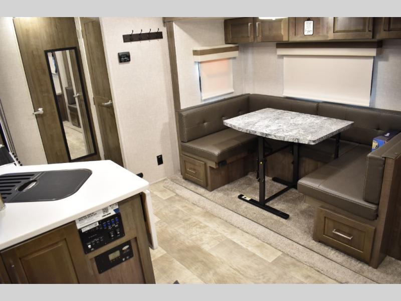 Each Rockwood Mini Lite travel trailer by Forest River is constructed with a fully laminated one-piece walkable roof, sleek frameless windows, and a six-sided full aluminum frame for strength and durability. The 12V thermostatically controlled heated tanks, plus radiant foil in the underbelly, front caps, and slide out floors will allow you to camp well into the colder months, and the 190W roof solar panel will be perfect for a little off-gridding. Each model includes solid surface kitchen countertops, solid wood cabinet doors, night roller shades, plus many more interior features. Having a Teton all in one Wi-Fi booster/LTE prep and antenna on board will allow you to get some work done if it's needed, and the power tongue jack provides hassle-free set up, so you can enjoy more time relaxing!
