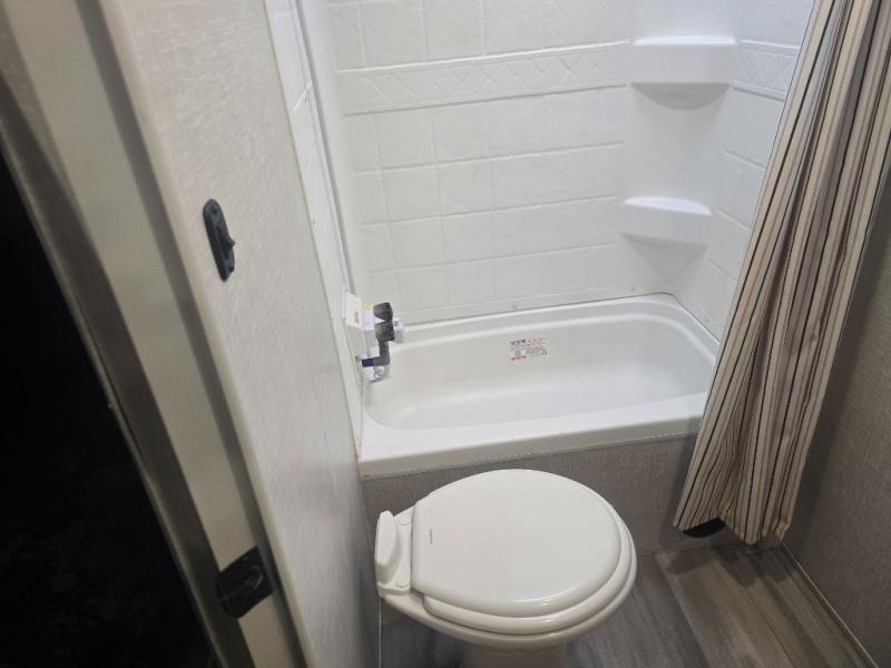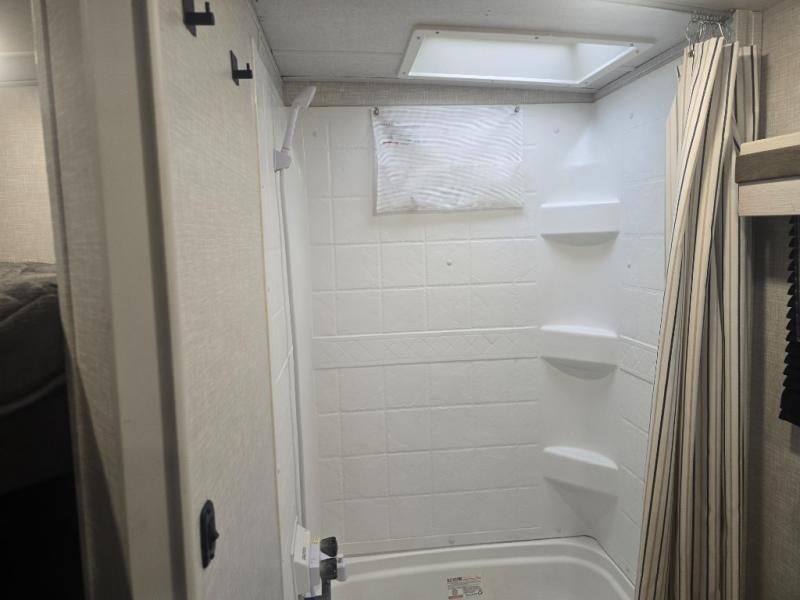 Finally, a lightweight travel trailer with double-size bunks for the kids or your guests! You'll find the versatile Murphy bed up front will be super convenient when you need more space to move around, and the 72" sofa will provide comfy seating space when the bed is put up. This model also includes a U-shaped dinette slide perfect to dine around, play games, and sleep additional guests. An LED TV in the main living area will allow you to watch your favorite shows in the evenings, or you may just find yourselves outdoors under the 18' power awning with LED lights. And check out the pass-through storage, plus additional exterior storage for your hiking gear!