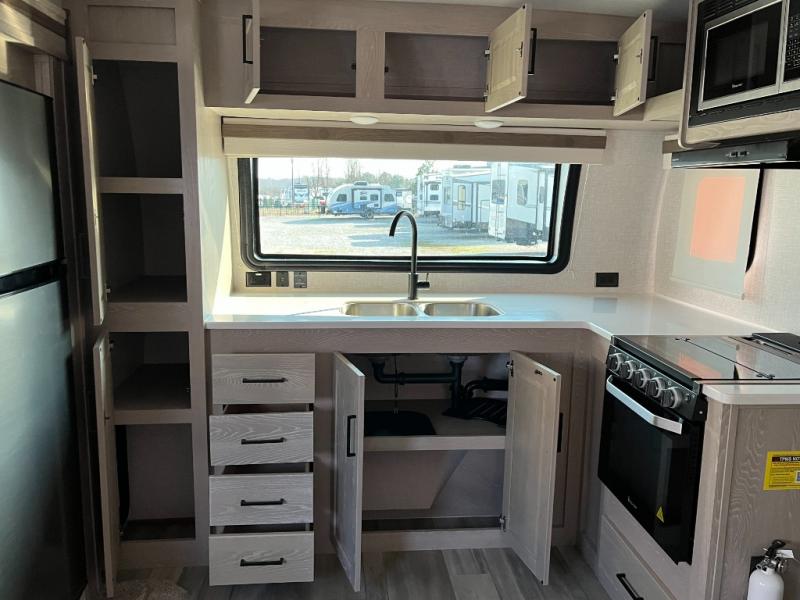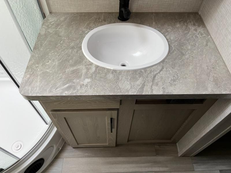 No need to rely on crowded campground restrooms — the Rockwood Mini Lite 2516S comes equipped with a full bathroom that includes a shower, toilet, and vanity. Designed with practicality and comfort in mind, this feature ensures your daily routines stay simple and convenient no matter where you roam.