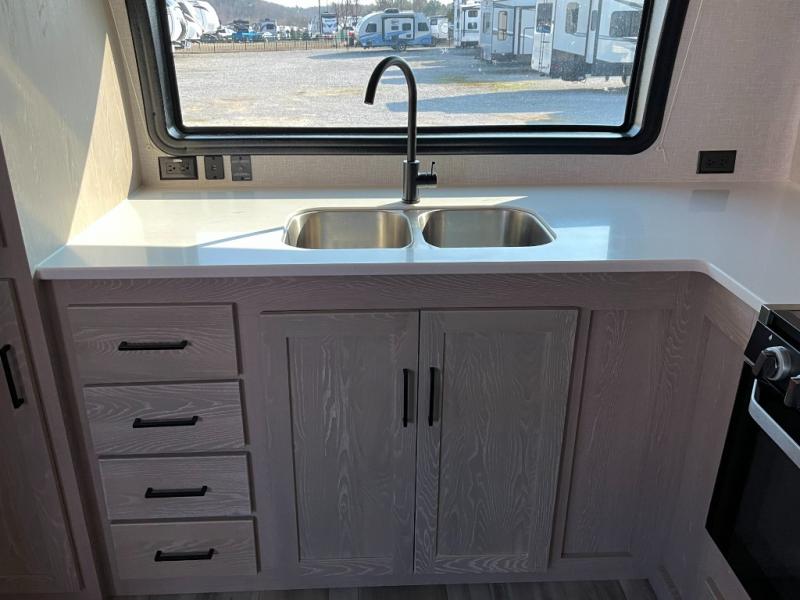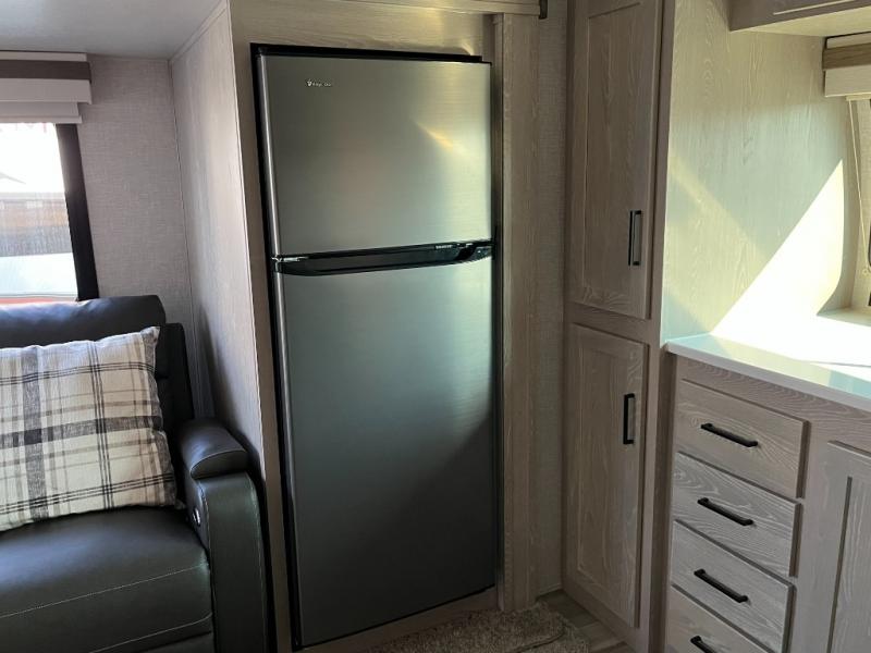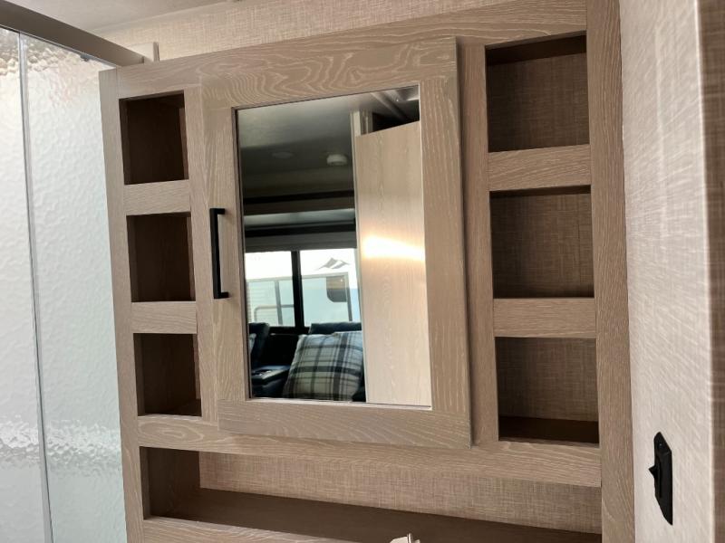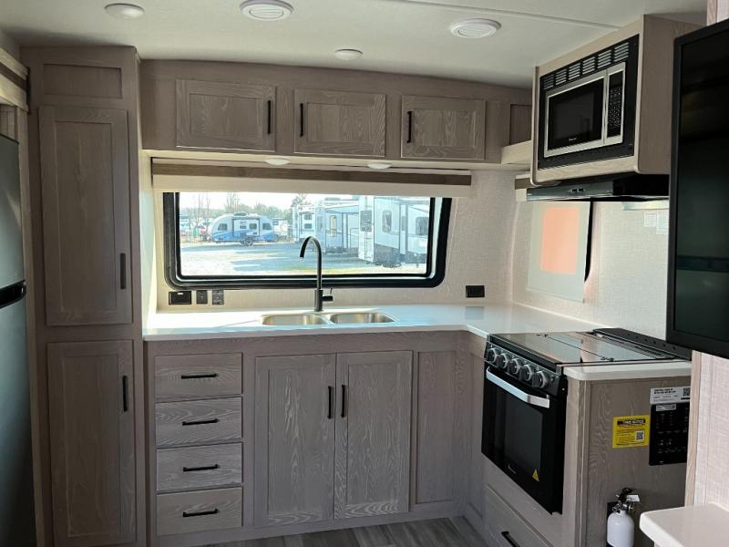 The kitchen in the 2516S is thoughtfully designed to make meal preparation simple and fun. With a cooktop, microwave, refrigerator, and generous countertop space, you’ll have what you need to prepare anything from quick breakfasts to hearty dinners. Clever cabinet and pantry storage help keep cookware, dishes, and ingredients organized and accessible during your travels.
