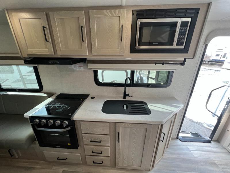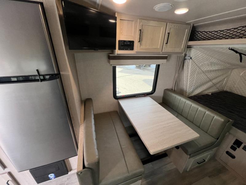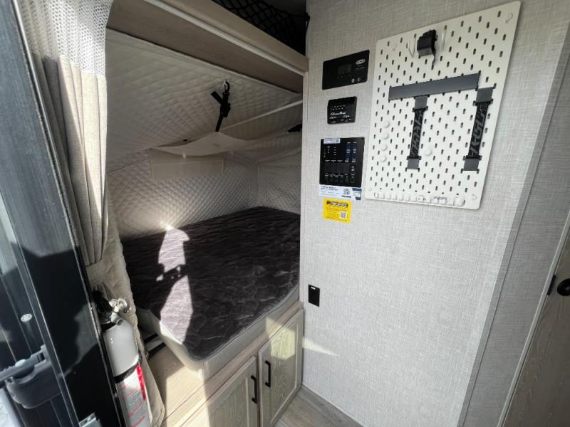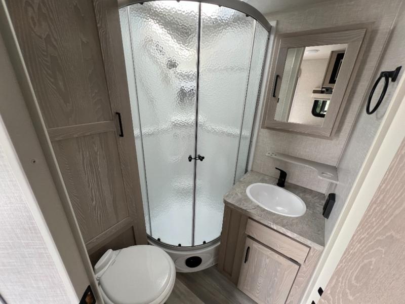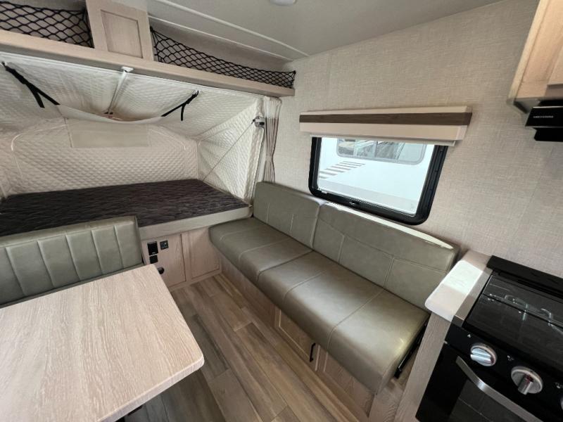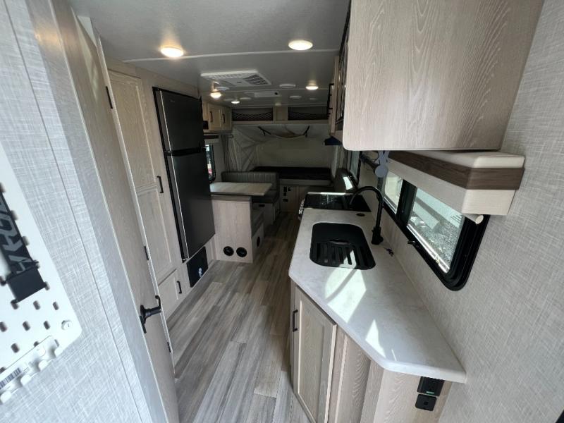 With any Rockwood Roo expandable travel trailer by Forest River you will enjoy smooth towing thanks to the torsion axle, Rubber-Ryde suspension, the easy lube axles and Nev-R-Adjust brakes, and the Goodyear Endurance tires. The key-Alike locks provide easy access in and out of your trailer, and each model includes a Teton all-in-one WiFi booster with LTE prep and an antenna for all your connection needs. Each model is constructed with a vacuum laminated one-piece roof and walls, an enclosed underbelly, and frameless windows for a more sleek look. You will enjoy many interior comforts, including hardwood cabinet doors and drawer fronts, pleated night shades, a bunk/fan light combo with each bed, and much more!