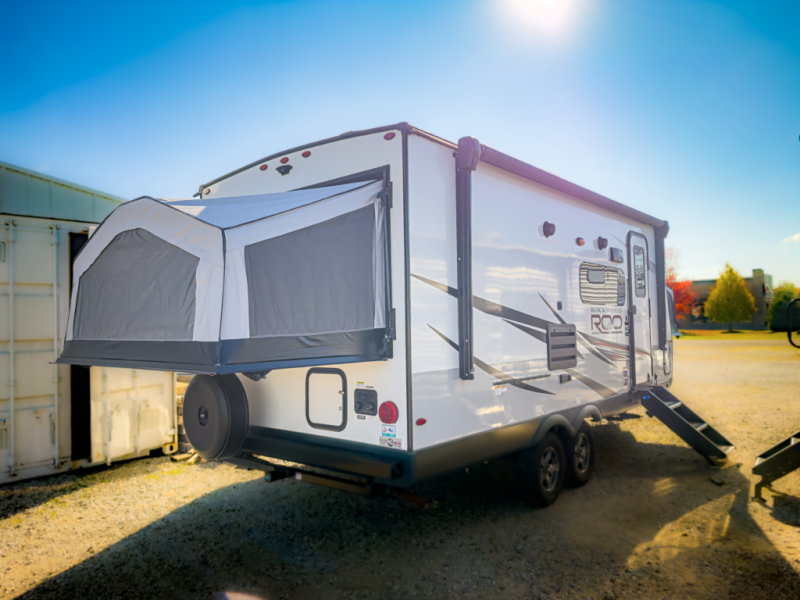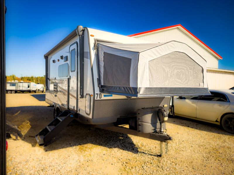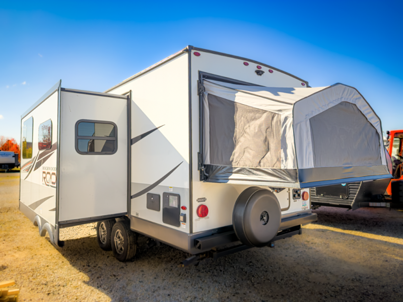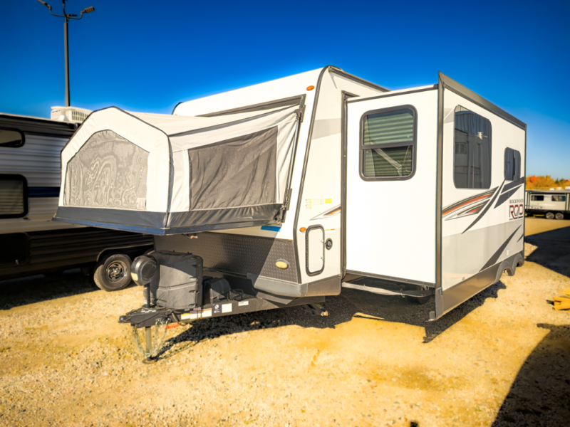 Spacious slideout hybrid with dual expandable beds, lightweight towability, and fully inspected Rockwood Roo quality priced right for fast Michigan camping trips.