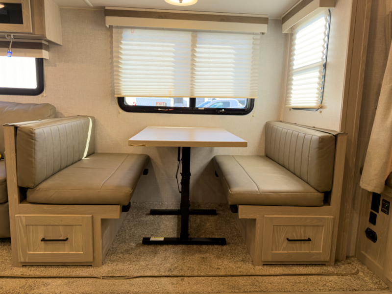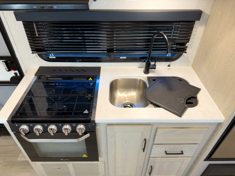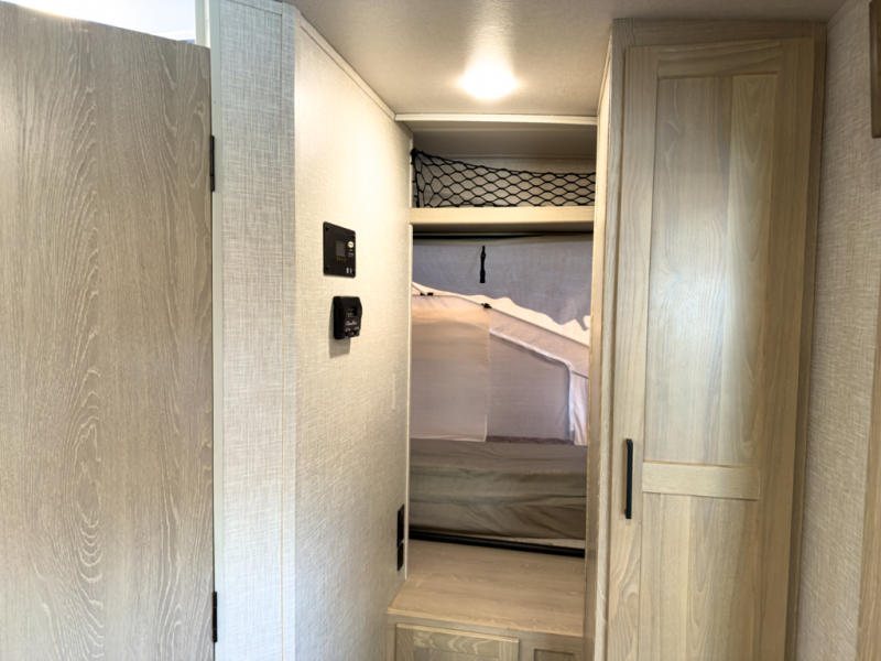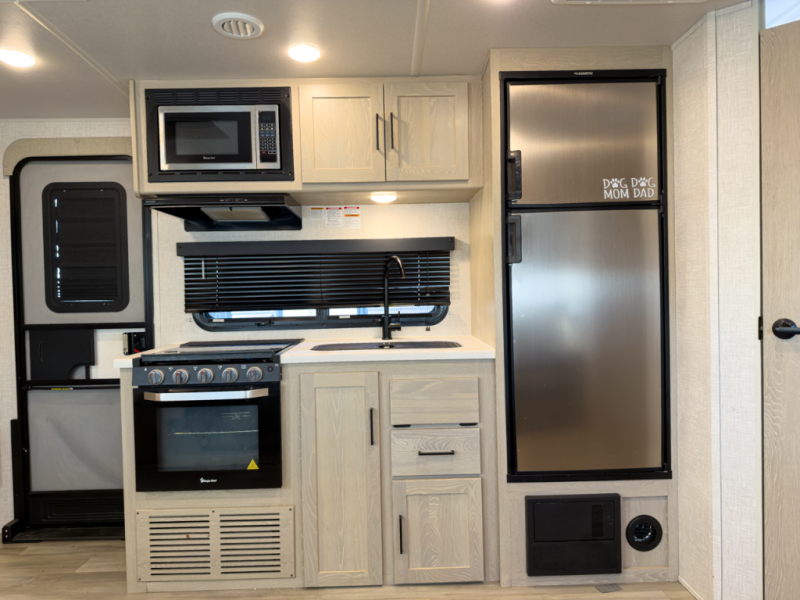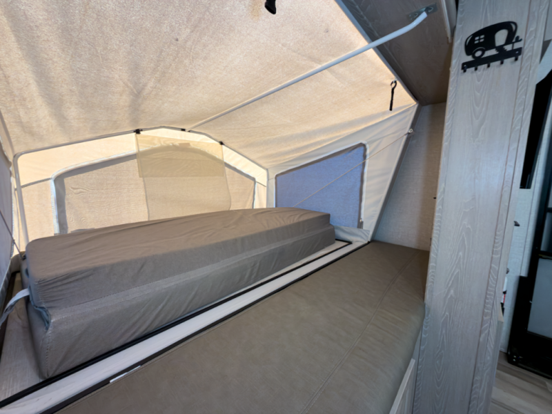 With any Rockwood Roo expandable travel trailer by Forest River you will enjoy smooth towing thanks to the torsion axle, Rubber-Ryde suspension, the easy lube axles and Nev-R-Adjust brakes, and the Goodyear Endurance tires. The key-Alike locks provide easy access in and out of your trailer, and each model includes a Teton all-in-one WiFi booster with LTE prep and an antenna for all your connection needs. Each model is constructed with a vacuum laminated one-piece roof and walls, an enclosed underbelly, and frameless windows for a more sleek look. You will enjoy many interior comforts, including hardwood cabinet doors and drawer fronts, pleated night shades, a bunk/fan light combo with each bed, and much more!