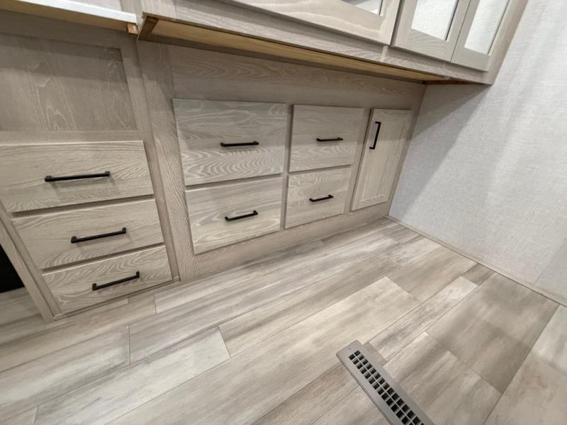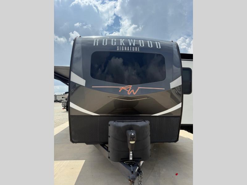 Each Rockwood Signature Ultra Lite fifth wheel and travel trailer by Forest River is constructed with a radiant foil insulated underbelly, laminated fiberglass sidewalls, and tinted frameless windows for a more sleek look. Enjoy hassle-free towing thanks to the torsion axle Rubber-Ryde suspension system, and you'll also appreciate the tire pressure monitoring system with a monitor and the rear observation camera prep. Each model includes LED TV's, a multi zone stereo with DVD/CD/AM/FM and Bluetooth, plus outside speakers for all your entertainment needs. You'll find that the carpetless main bedroom floor will be so easy to clean, and the under-bed storage will allow you to easily store your luggage once you've unpacked. These fifth wheels and travel trailers also include designer kitchen backsplash, beautiful Newport Ash or Autumn wood cabinetry, and a fireplace on most models.