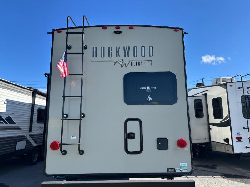 With any Rockwood Ultra Lite fifth wheel and travel trailer by Forest River RV, the superior construction includes a painted fiberglass front cap with clear coat, a full laminated one-piece walkable roof, aluminum truss roof bracing, and a six-sided full aluminum frame. Some safety standards include Dexter torsion axles, MORryde strut assist steps, and the TST tire pressure monitor system. The interior offers the OneControl panel with WeRV app control, screwed and glued, solid wood cabinet doors and drawers with hidden hinges, metal drawer glides and residential or upgraded hardware. You'll also find solid surface kitchen countertops, designer kitchen backsplash, plus many more features depending on the Rockwood Ultra Lite you choose!